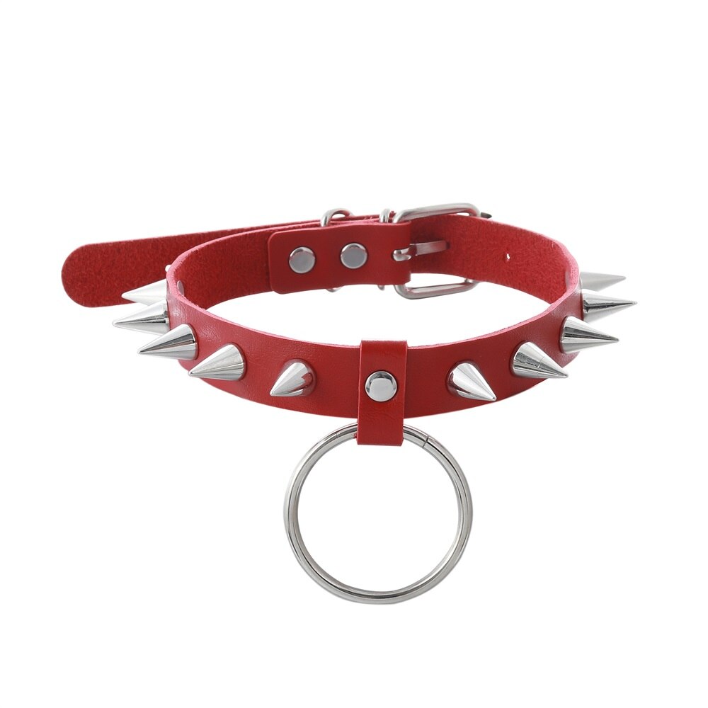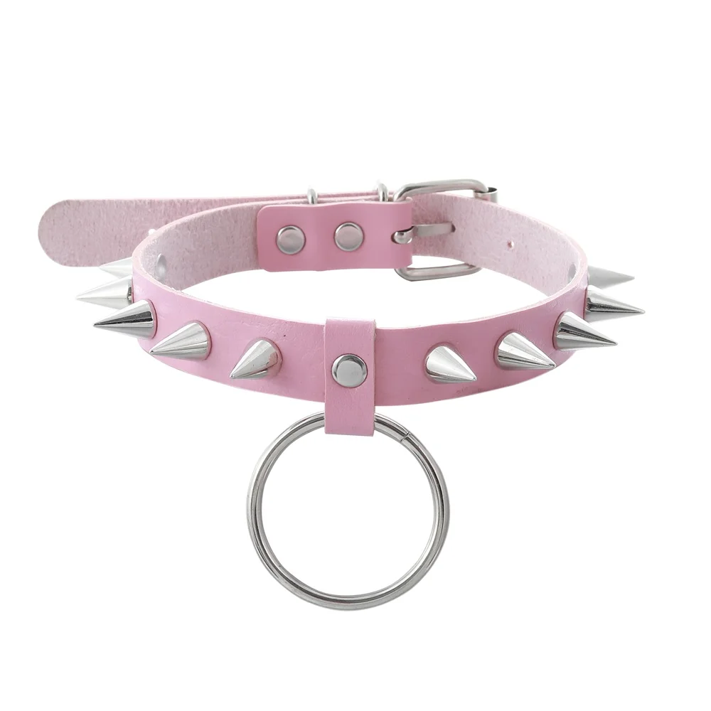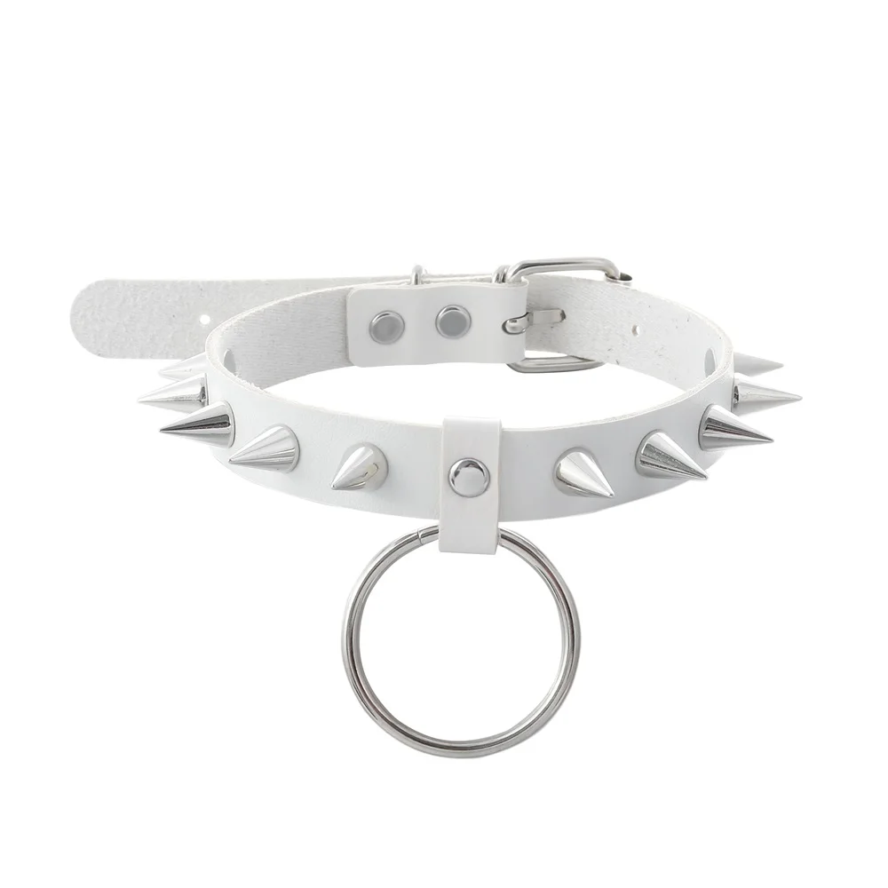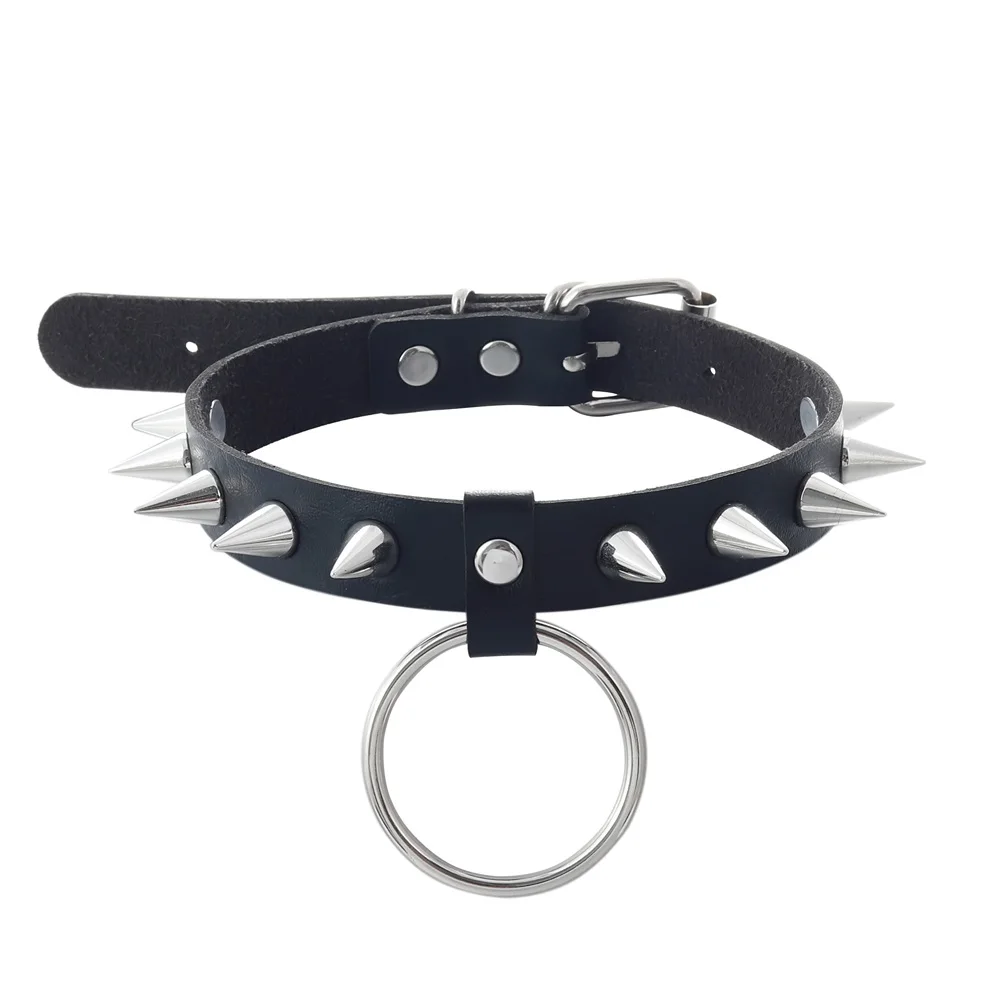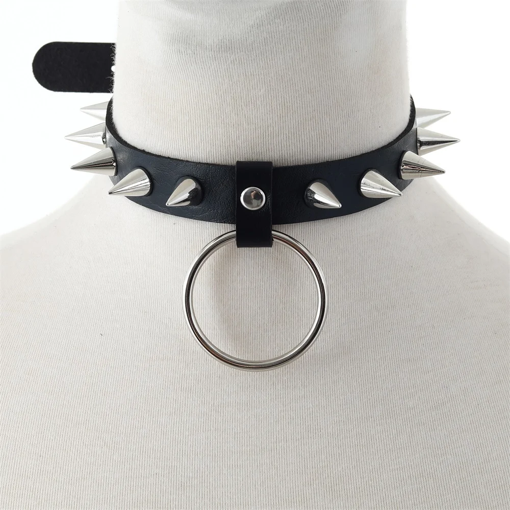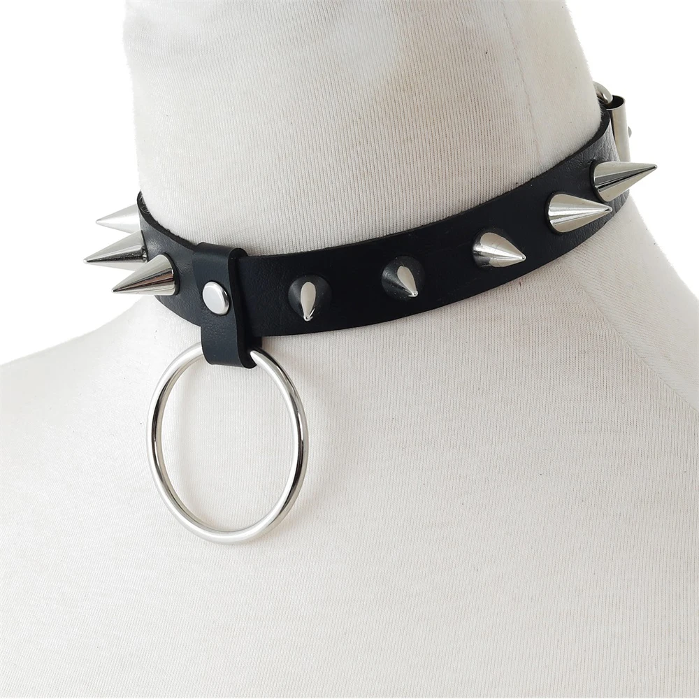 Emo Spike Choker Cool Punk Black Faux Leather Collar For Girls Chocker Goth Necklace Gothic Accessories