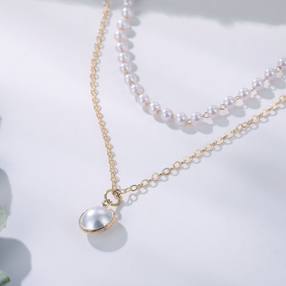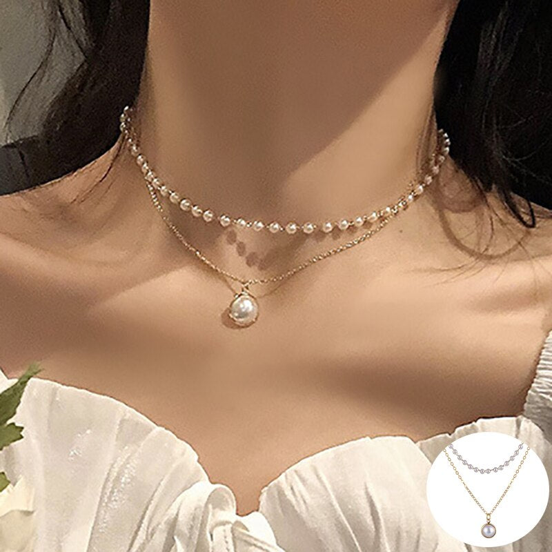 EN 2021 Double Layer Chain Gold Choker Necklace Women Korean Style Pearl Pendant Necklace Jewelry Collar Gifts Party