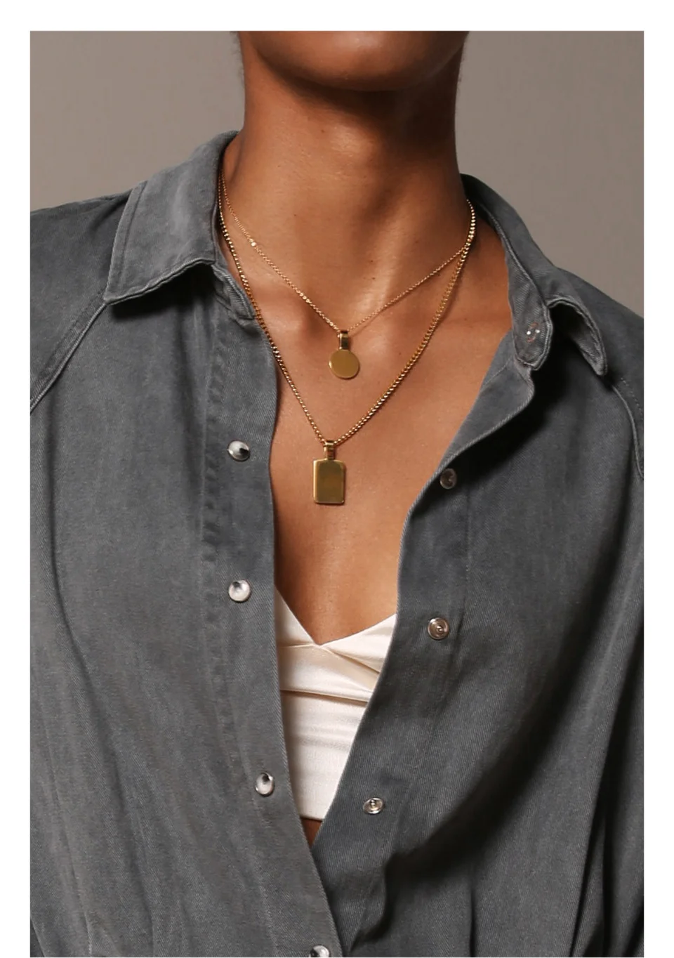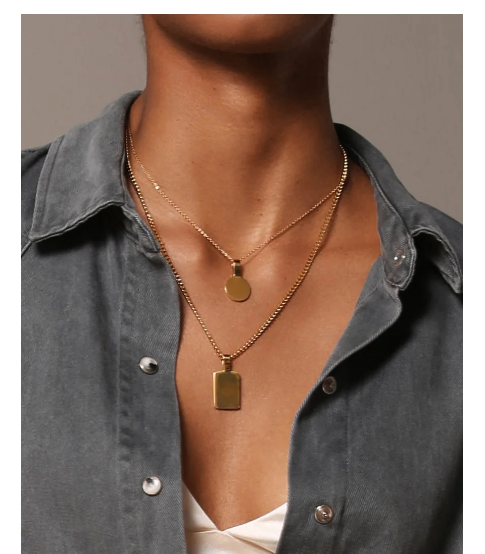 ENPersonalized Engraved Name Necklace Stainless Steel Circle Square Pendant Necklaces For Couples Jewelry Custom PB3010