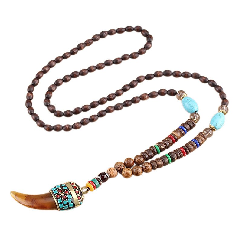 Ethnic Buddha Ganesha Elephant Pendant Necklace For Women Men Wooden Lucky Amulet Big Horn Crescent Moon Sweater Chain Necklace