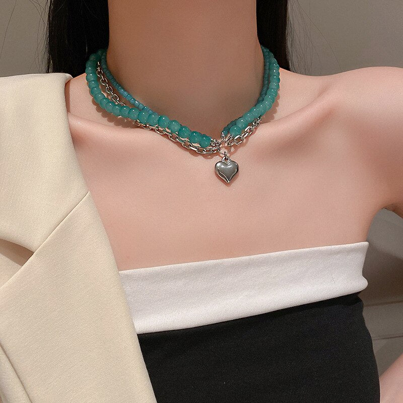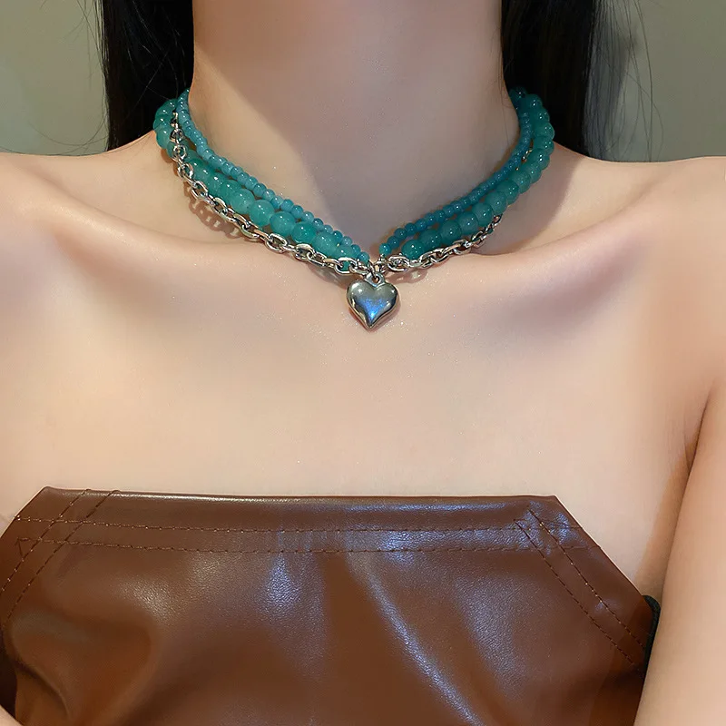 Ethnic Multi Layers Green Crystal Big Statement Necklace For Women Bohemian Personality Choker Collares Jewelry
