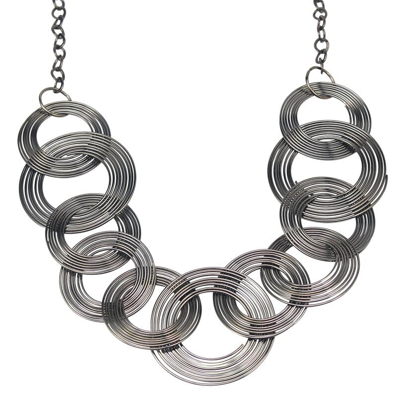 Ethnic Style Black Gun Plated Chorker Necklace Women Stainless Steel Multi Wire Circle Linked Chain Collar Necklaces