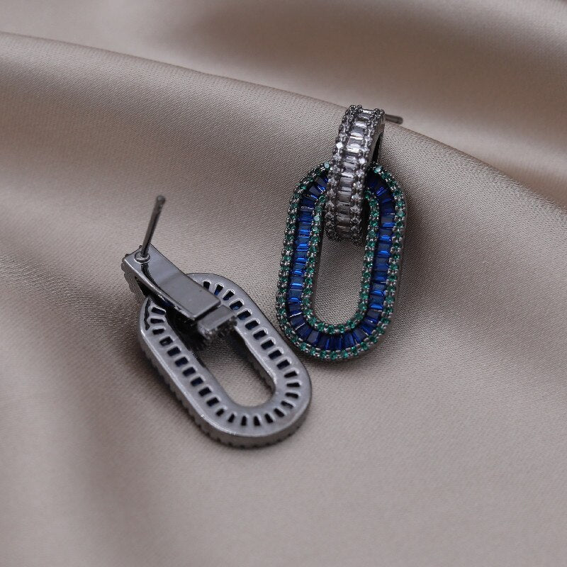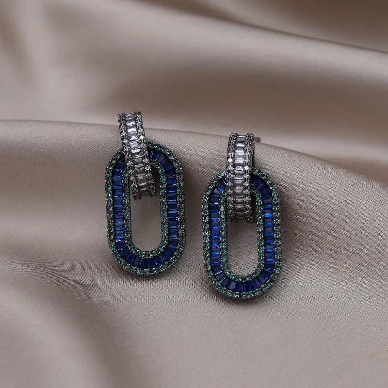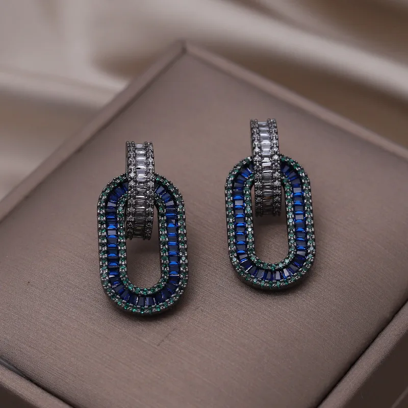 Europe America Jewelry Copper Set Zircon Geometric Pendant Earrings Elegant Women Wedding Party Accessories