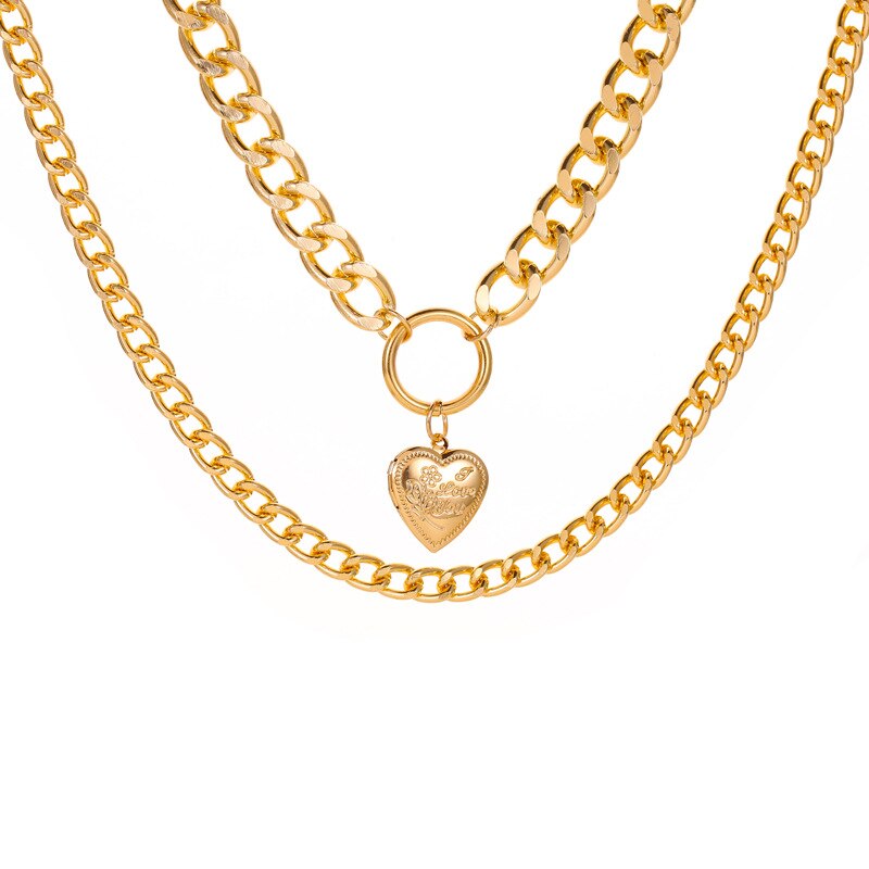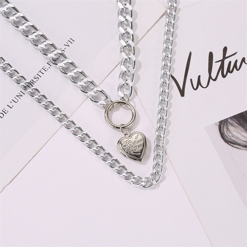 Europe and America Jewelry Double Chain Love Heart Pendant Necelace Punk Street Thick Chain Sweater Choker Necklace
