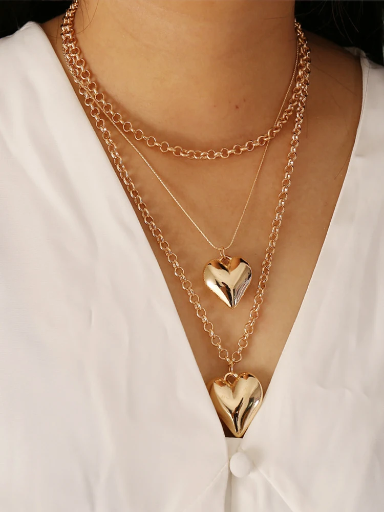 Europe and America Love Heart Pendants Chokers Personality Multilayer Necklaces For Women Heart Shape Vintage Bohemian Jewelry