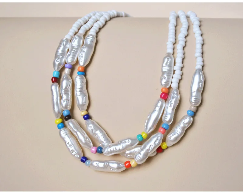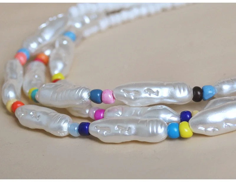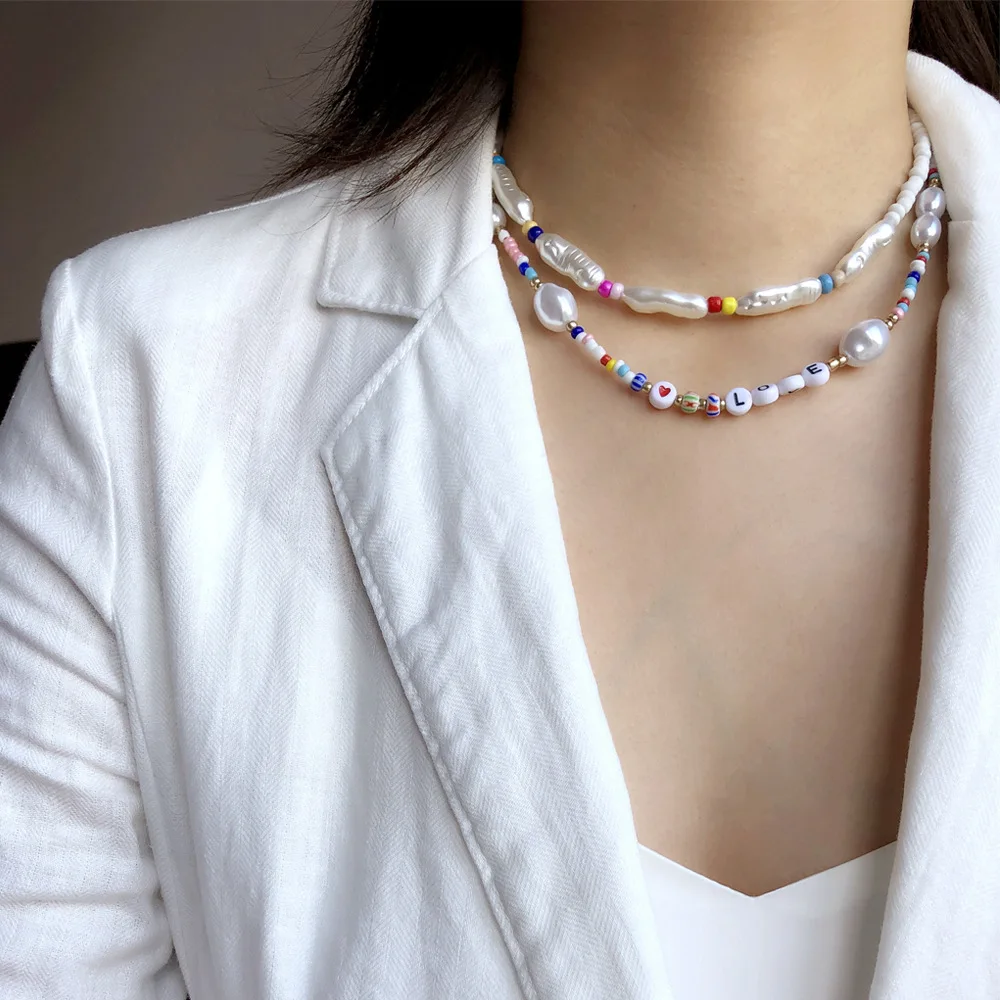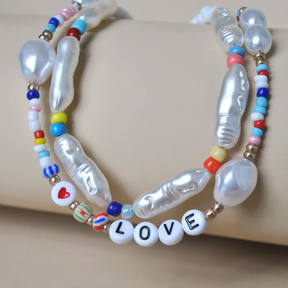 European and American heart love letter jewelry pearl necklace female bohemian color rice bead neck clavicle chain