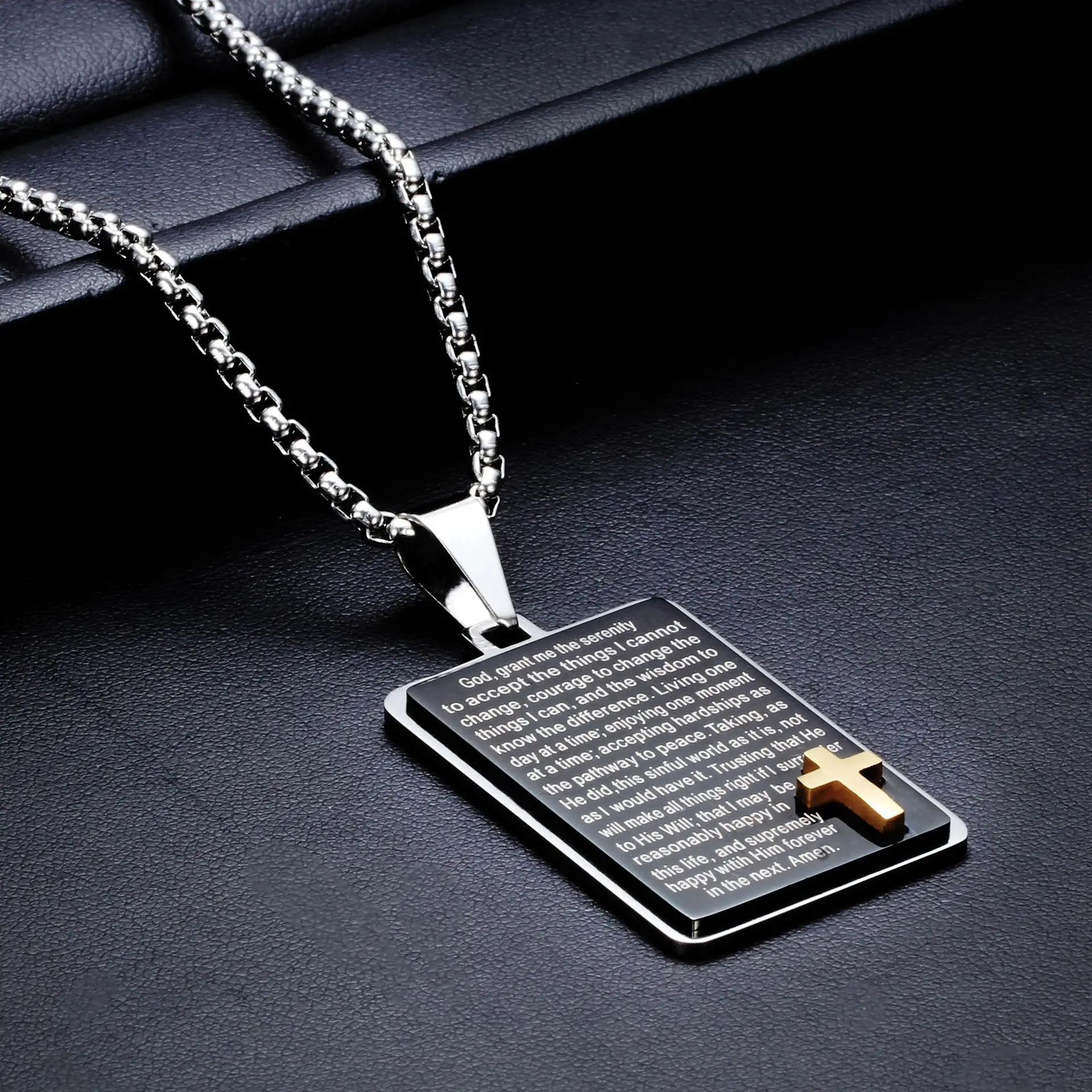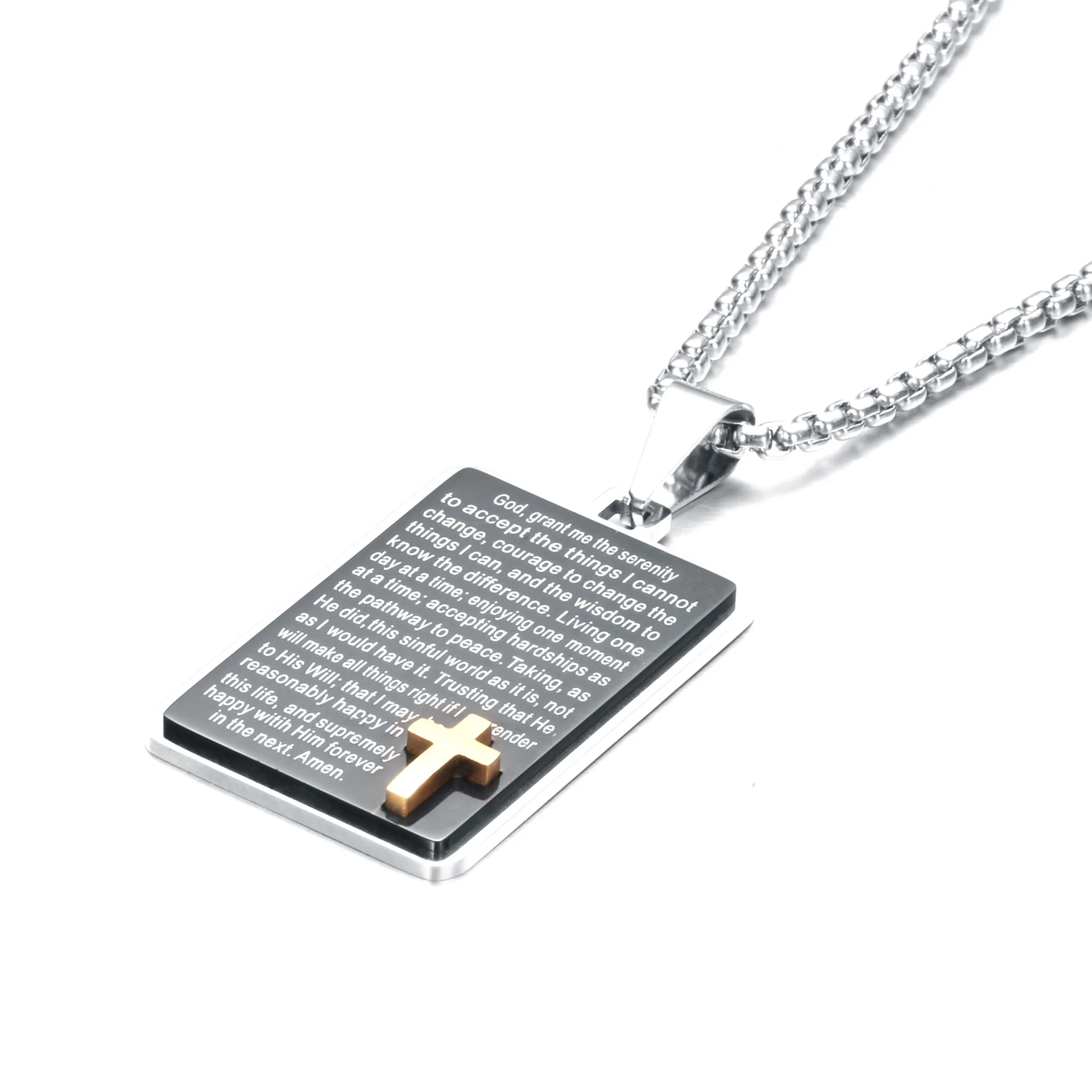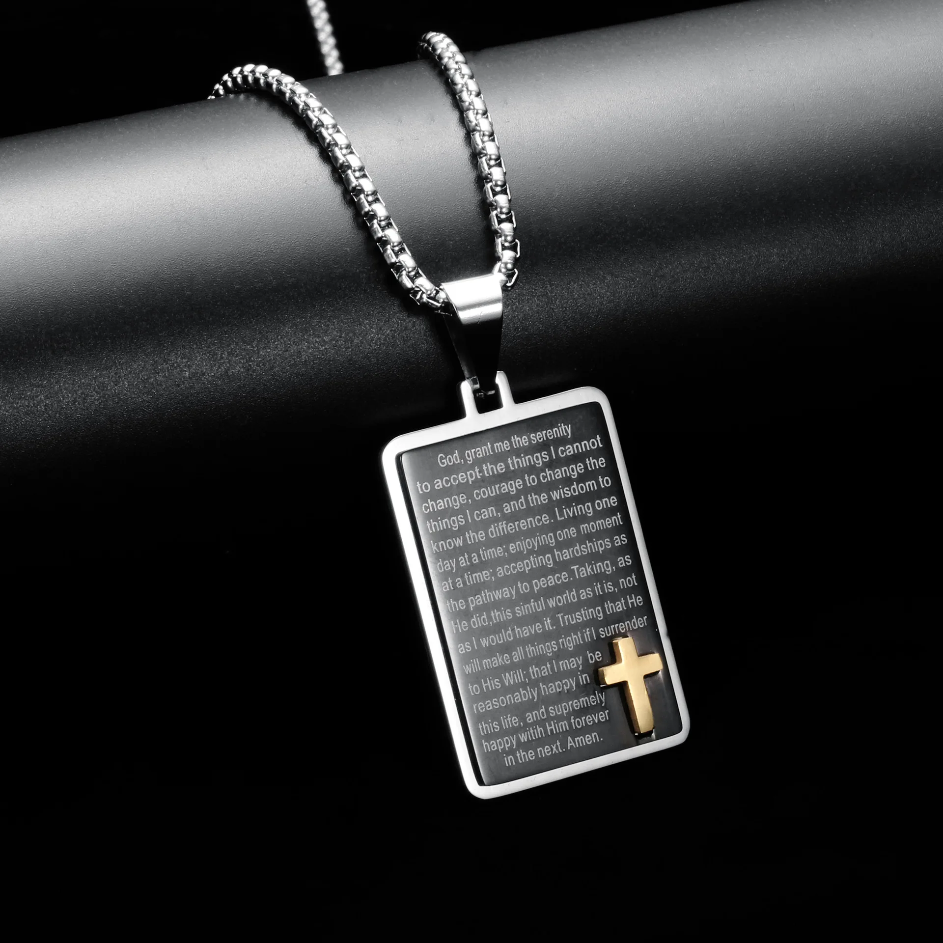 European And American Ins Simple Personality Christian Jesus Cross Retro Square Stainless Steel Men's Necklace