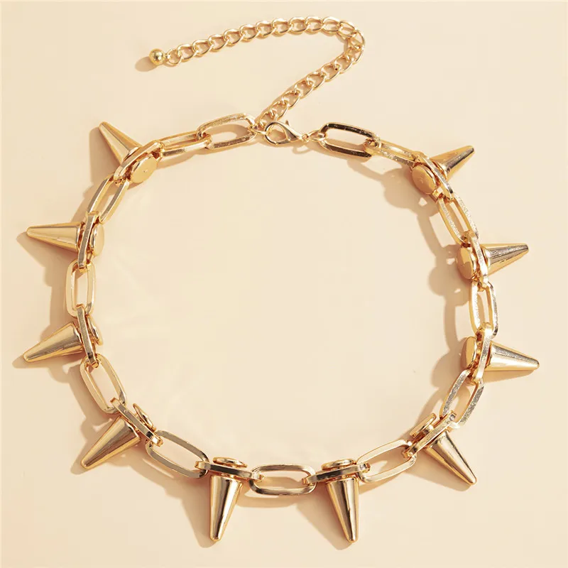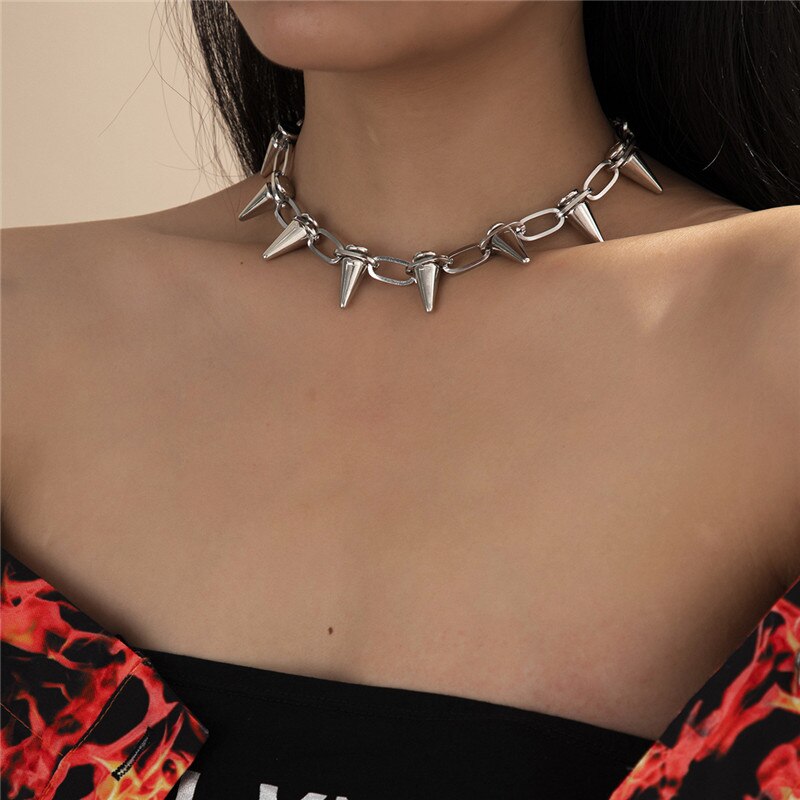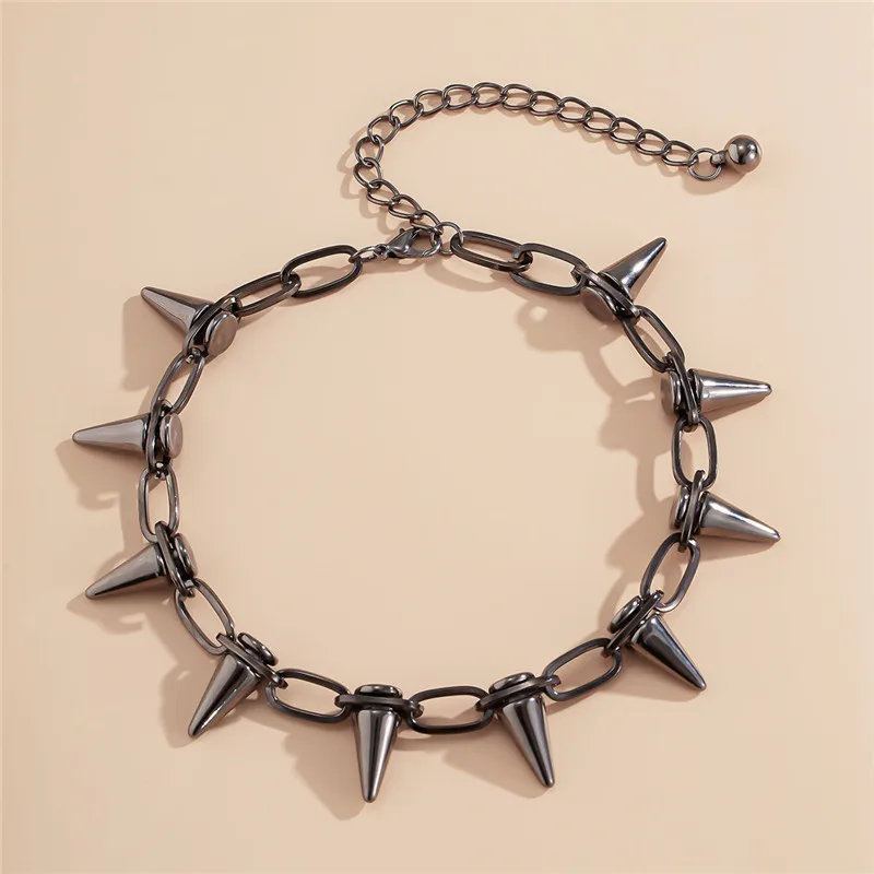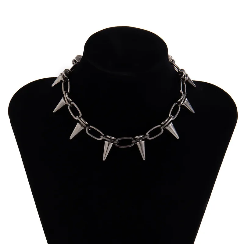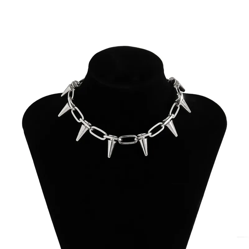 European And American Punk Hip-hop Style Single Layer Tassel Clavicle Chain Women Personality Retro Rivet Chain Necklace Jewelry