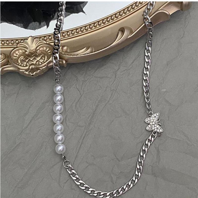European And American Style Pearl Butterfly Necklace 2021 Cool Style Titanium Steel Clavicle Chain Hip Hop Trend