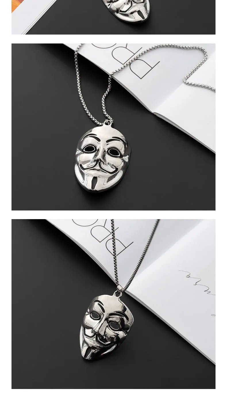European and American V-shaped vendetta team mask avatar pendant hip hop titanium steel necklace accessories bodyguard couple