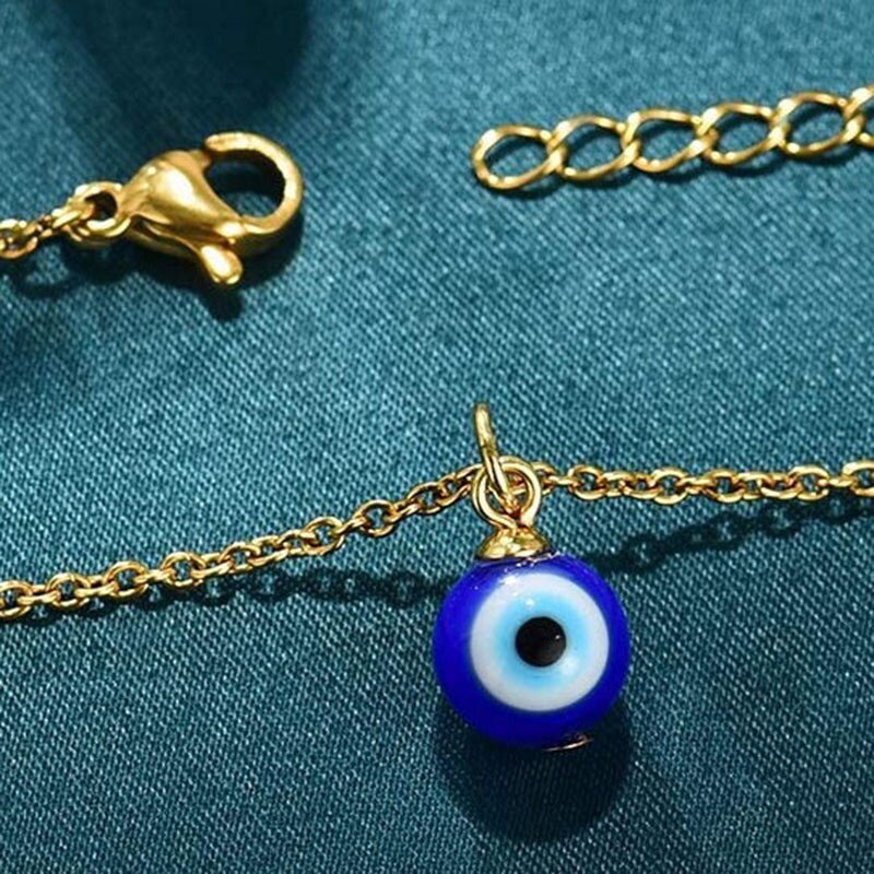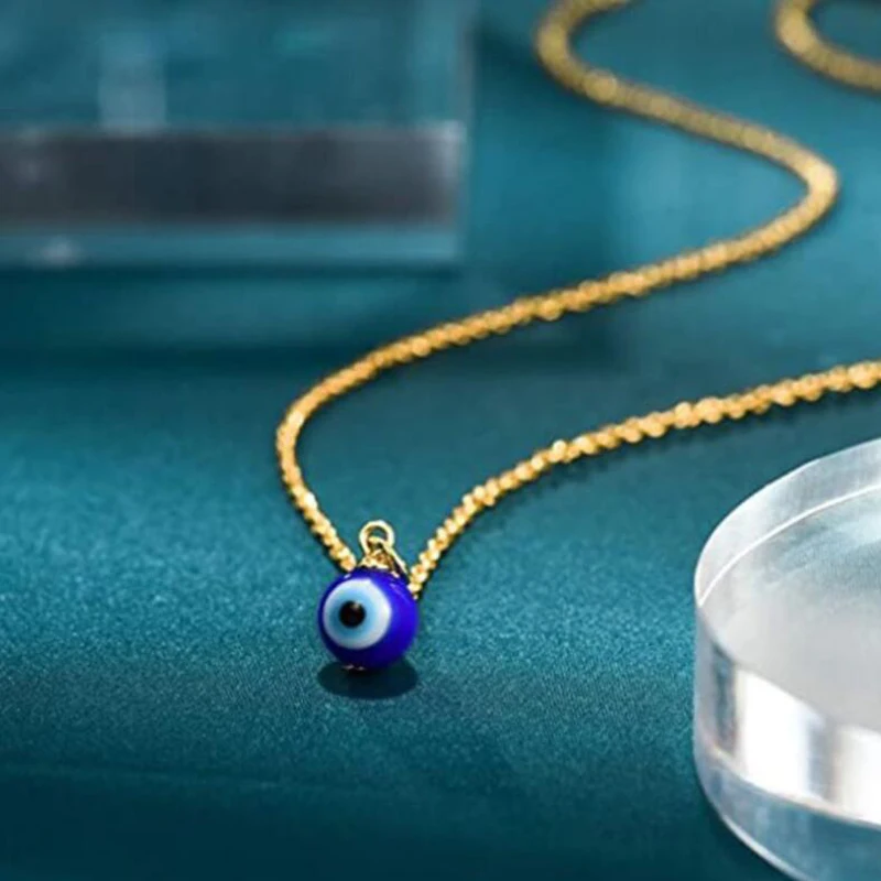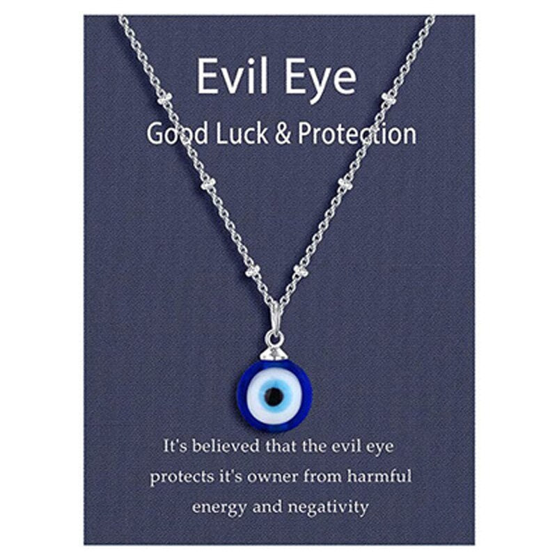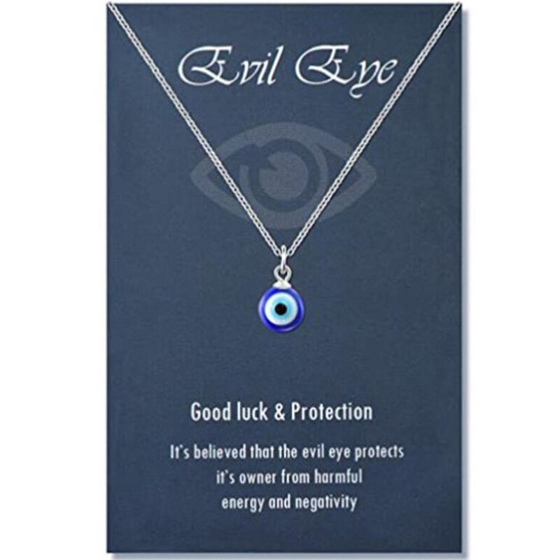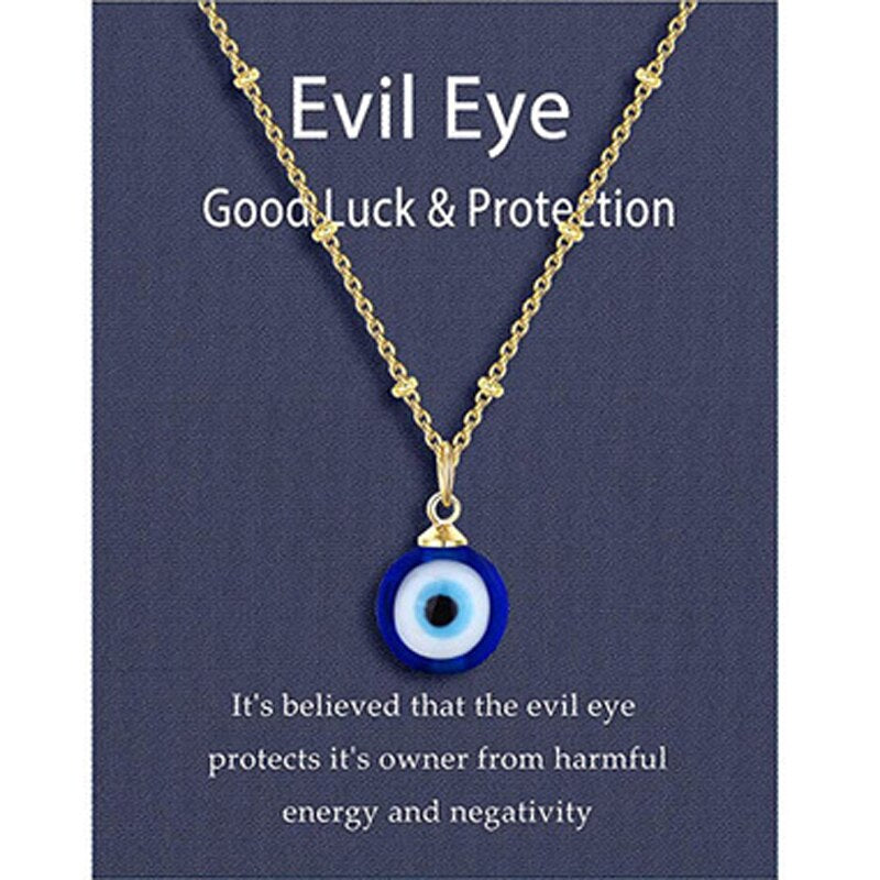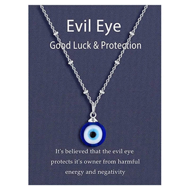 Evil Eye Chain Necklace Blue Eyes Amulet Pendant Necklace Ojo Turco Kabbalah Protection Delicate Jewelry Gift for Women Girls