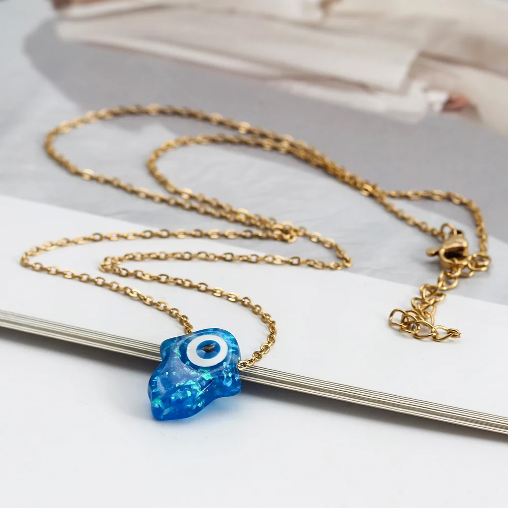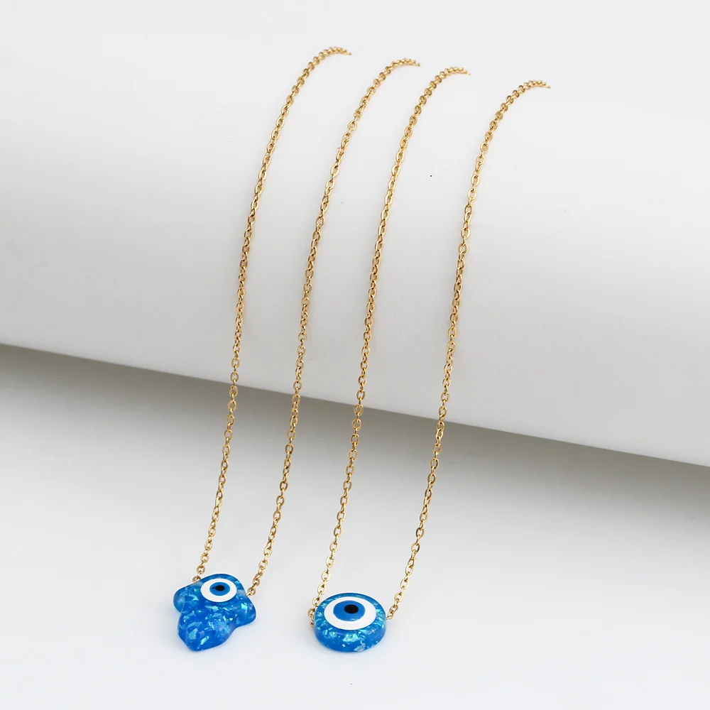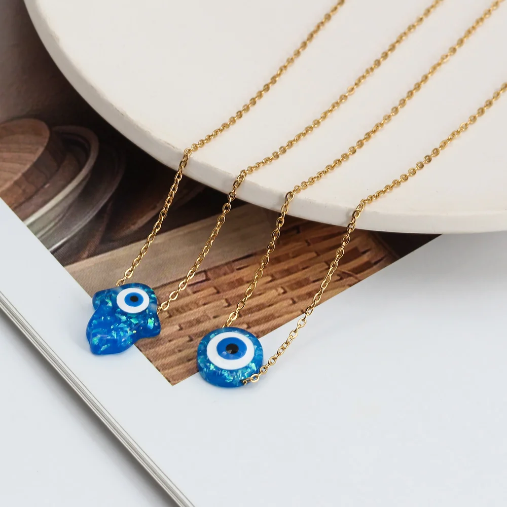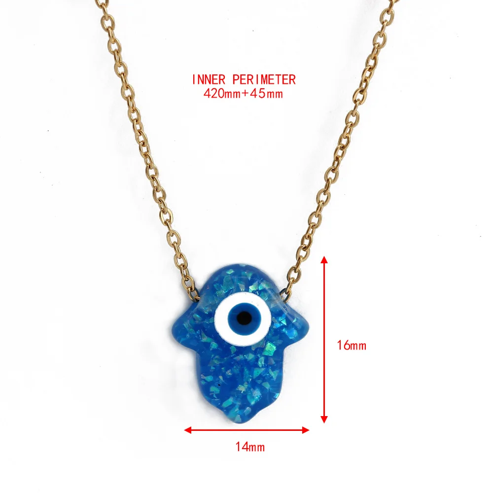 EVIL EYE Titanium Steel Dainty Long Chain Necklace Hamsa Hand Turkish Evil Eye Pendant Necklace Jewelry for Women Girls BE367