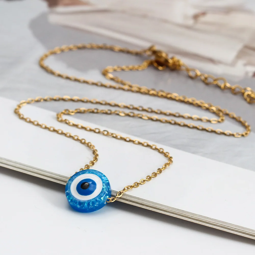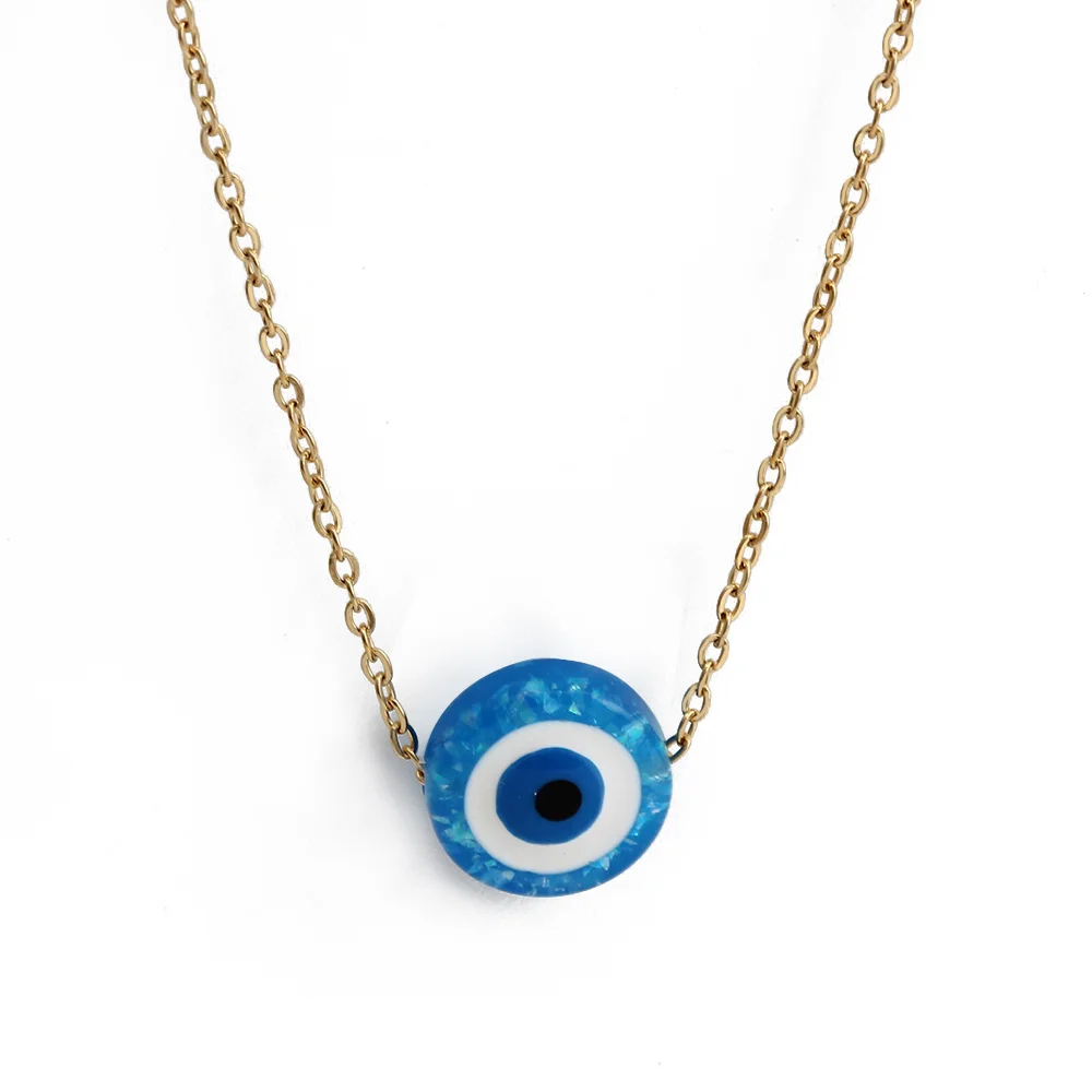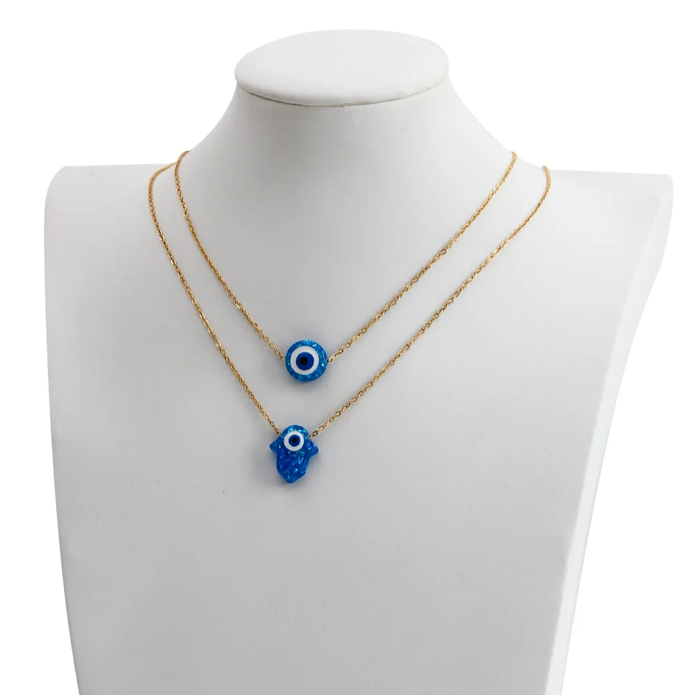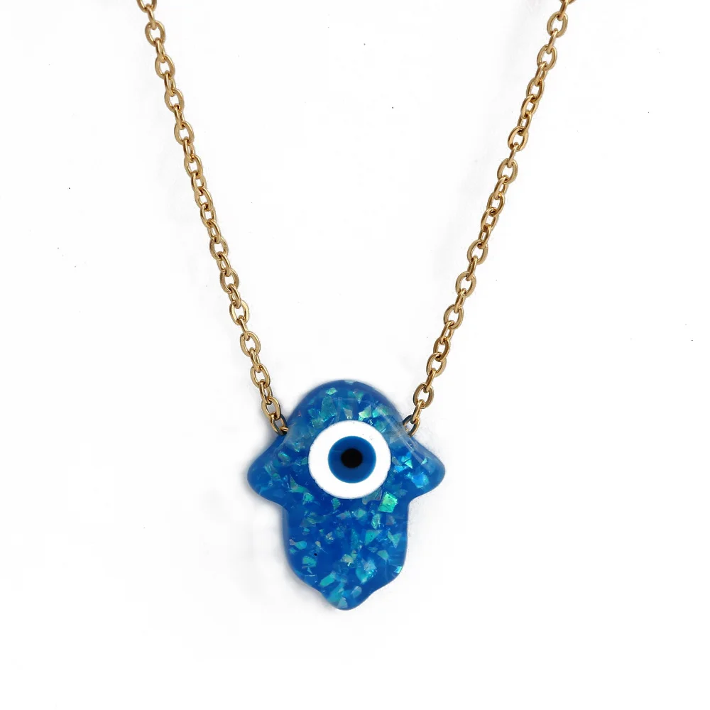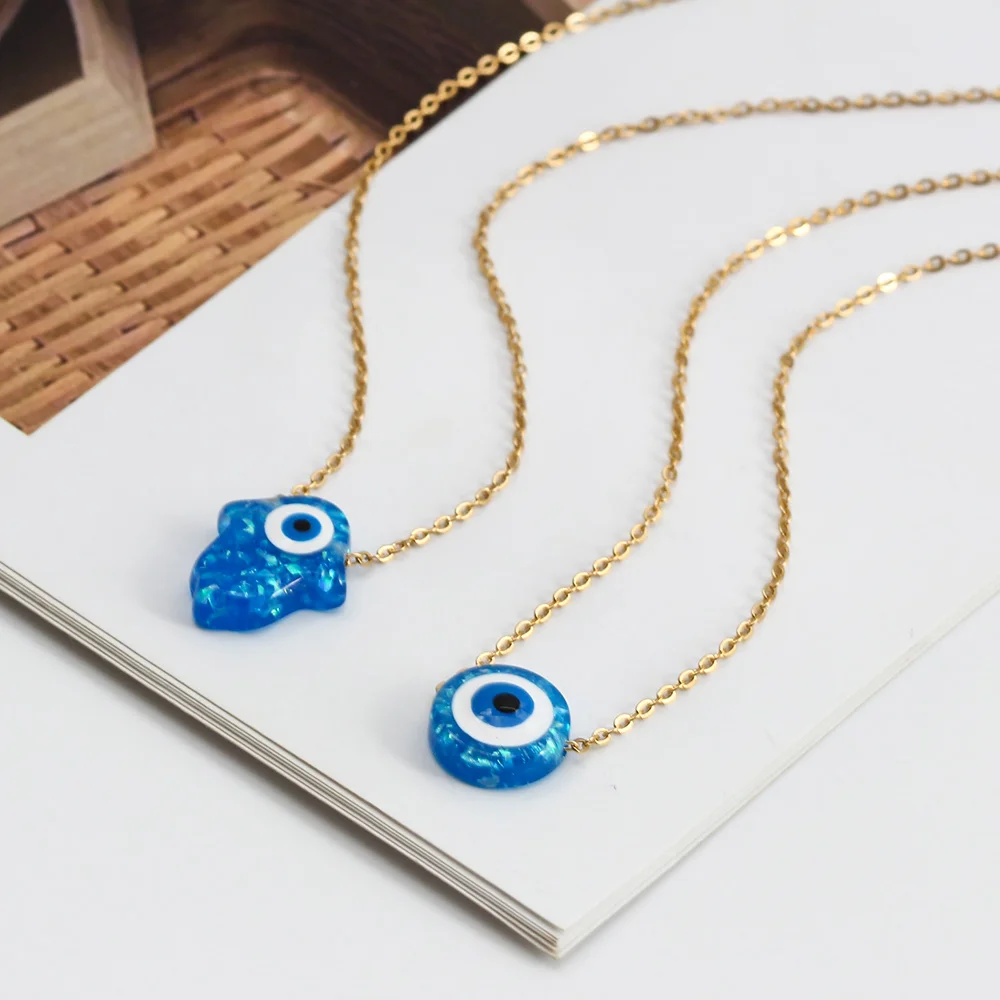 EVIL EYE Titanium Steel Dainty Long Chain Necklace Hamsa Hand Turkish Evil Eye Pendant Necklace Jewelry for Women Girls BE367