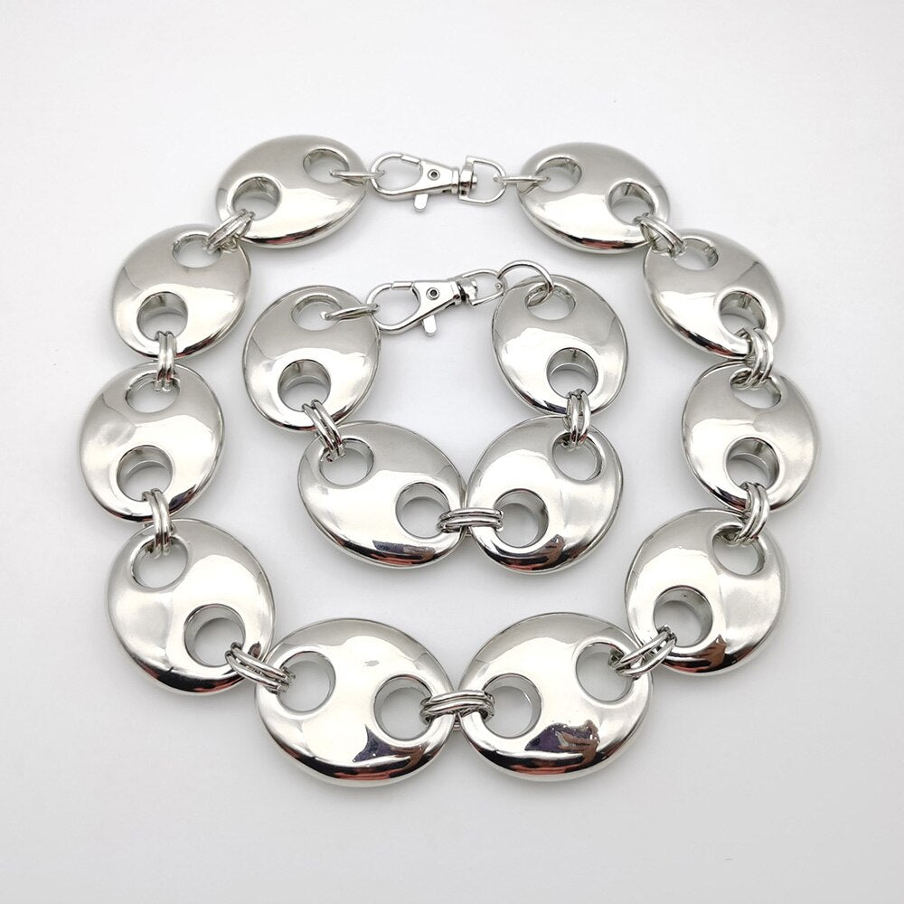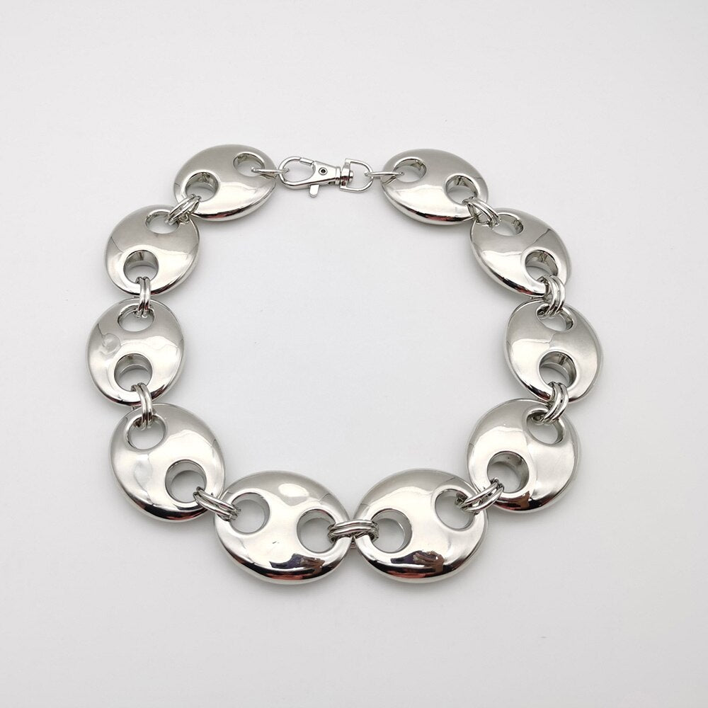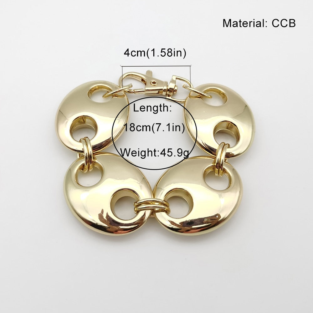 Exaggerated Punk Thick CCB Metallic Golden Oval Short Necklace Women Men Handmade Collar Necklace Punk Gift