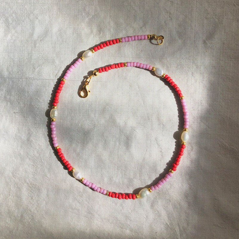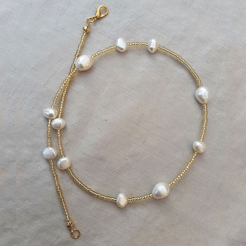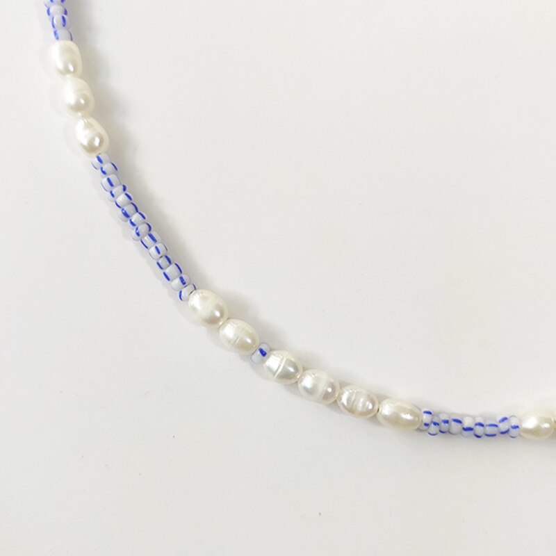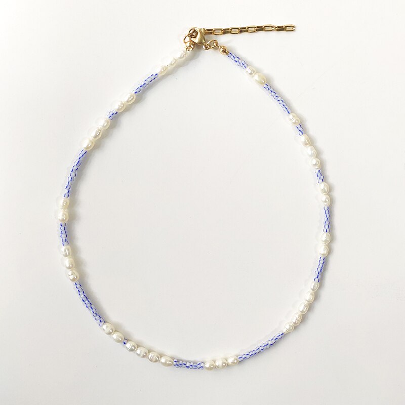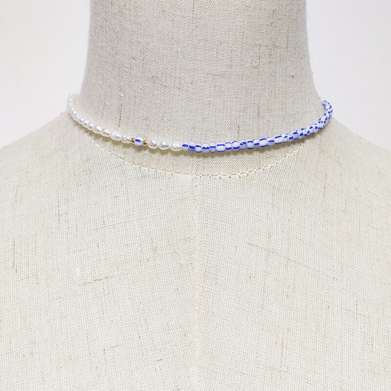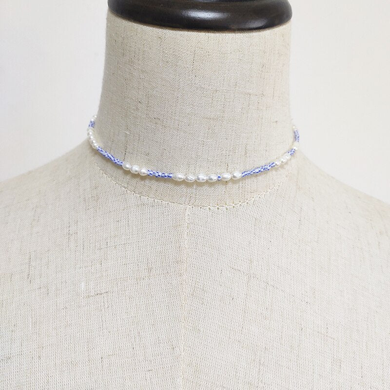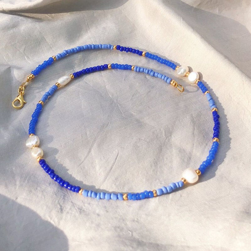 exquisite blue bead short necklace natural freshwater pearls mix and match boho style jewelry handmade adjustable choker