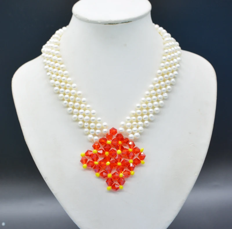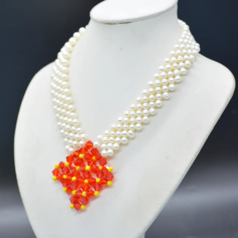 Exquisite. Pretty. Natural freshwater pearl, crystal necklace. The most beautiful ladies' PARTY jewelry 17“