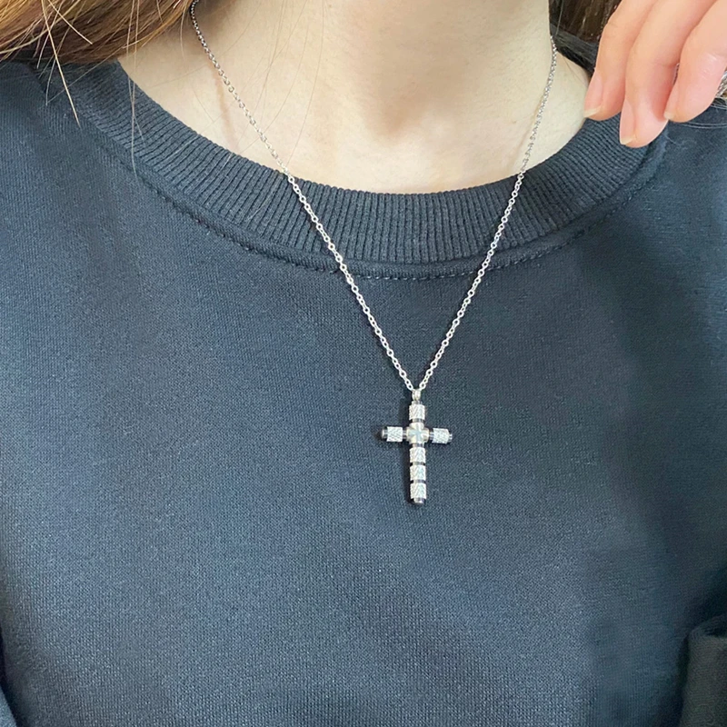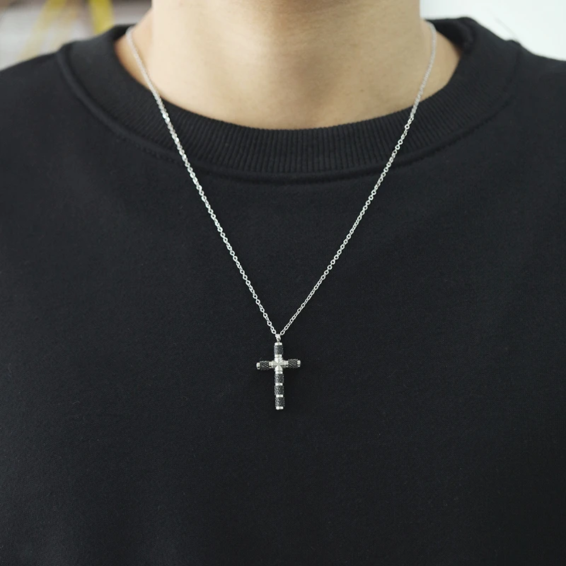 EyeYoYo Classic Retro Shiny Cubic Zirconia Cross For Men Women Cruz Choker Pendant Necklace Party Jewelry