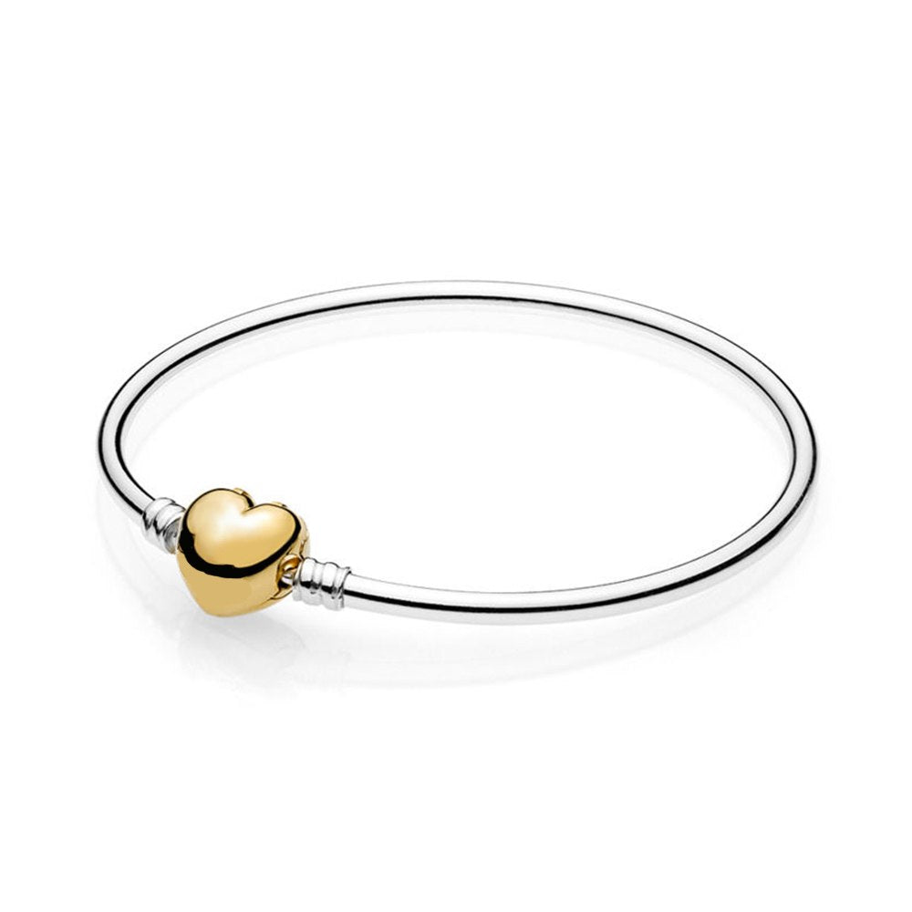 100% 925 Sterling Silver 1:1 Charm Beads SHINE HEART MOMENTS ROSE BRACCIALE RIGIDO IN ARGENTO LA BELLA E LA BESTIA
