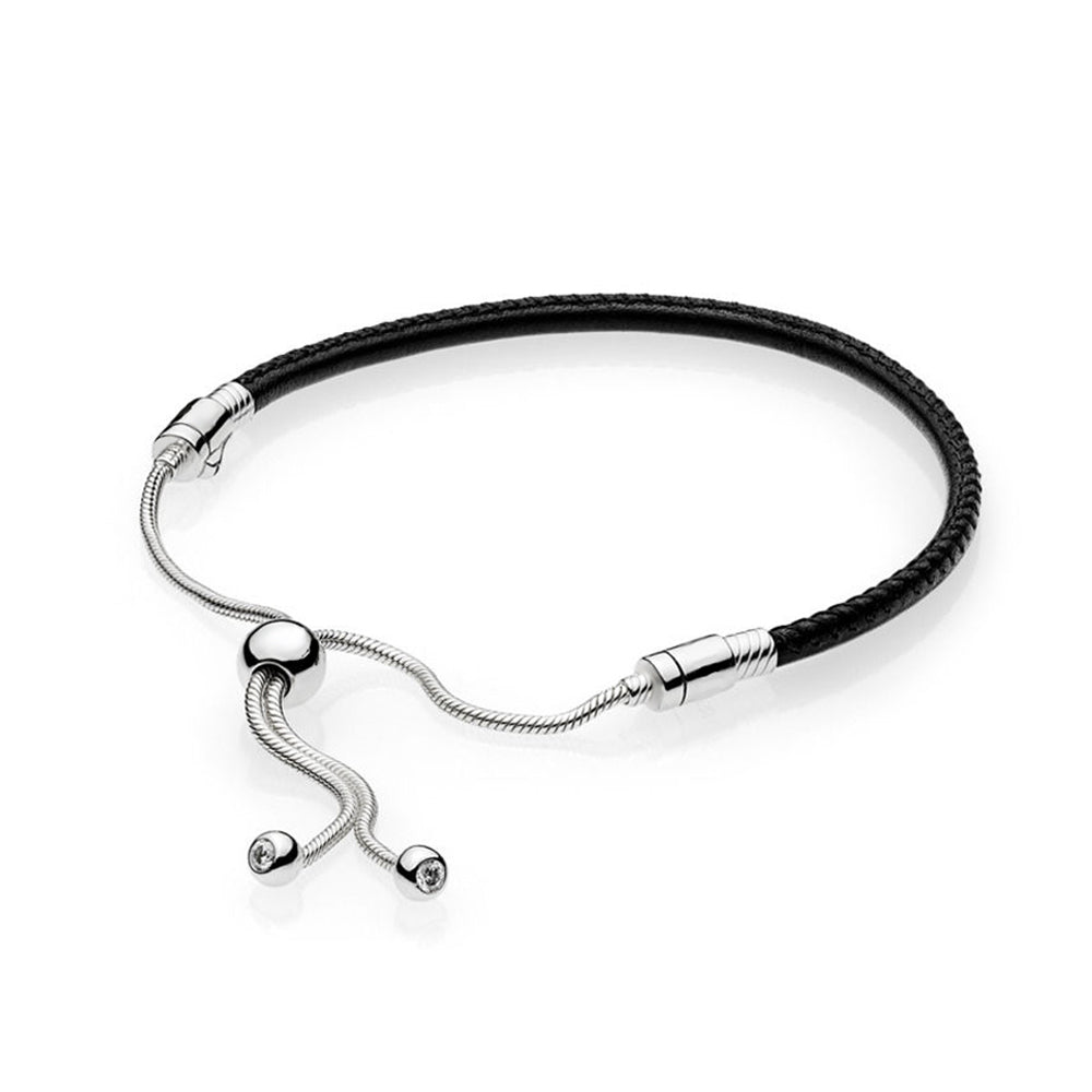 100% 925 Sterling Silver 1:1 Charm EXPLOSION OF LOVE BRILLIANT BOW MOMENTS BLACK LEATHER Golden Tan Leather