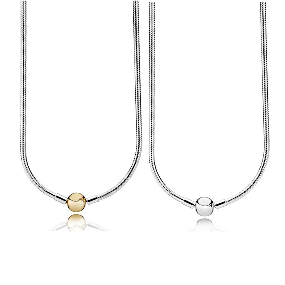 100% 925 Sterling Silver 590742HG MOMENTS SILVER NECKLACE WITH 14CT GOLD ROUND CLASP 590742HV Glamour Women's Original