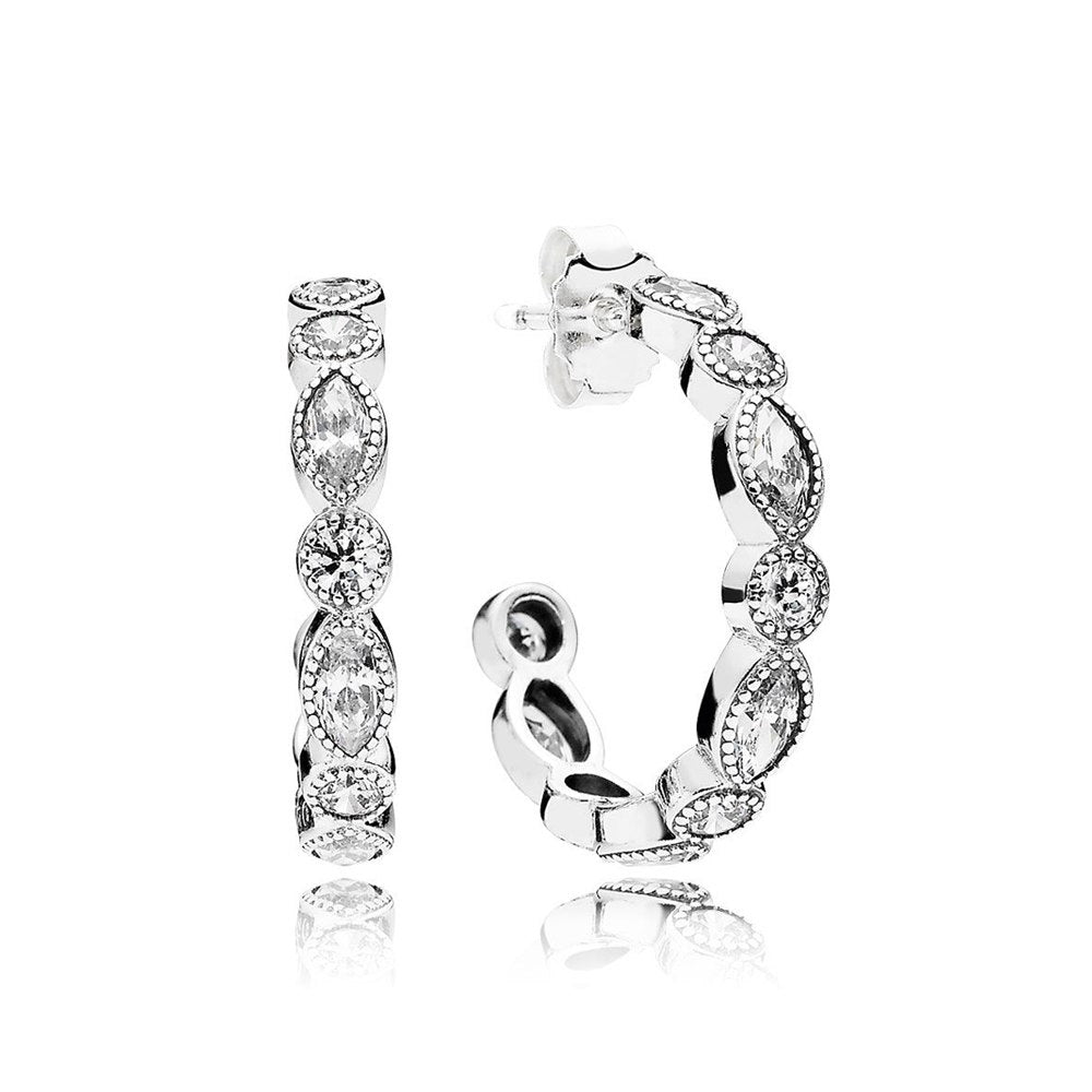100% 925 Sterling Silver Twist Of Fate FLOURISHING HEART EARRING FOREVER SIGNATURE ALL BRILLIANT MARQUISE EARRING