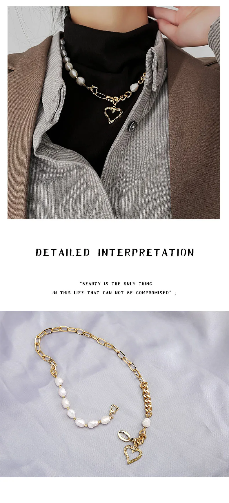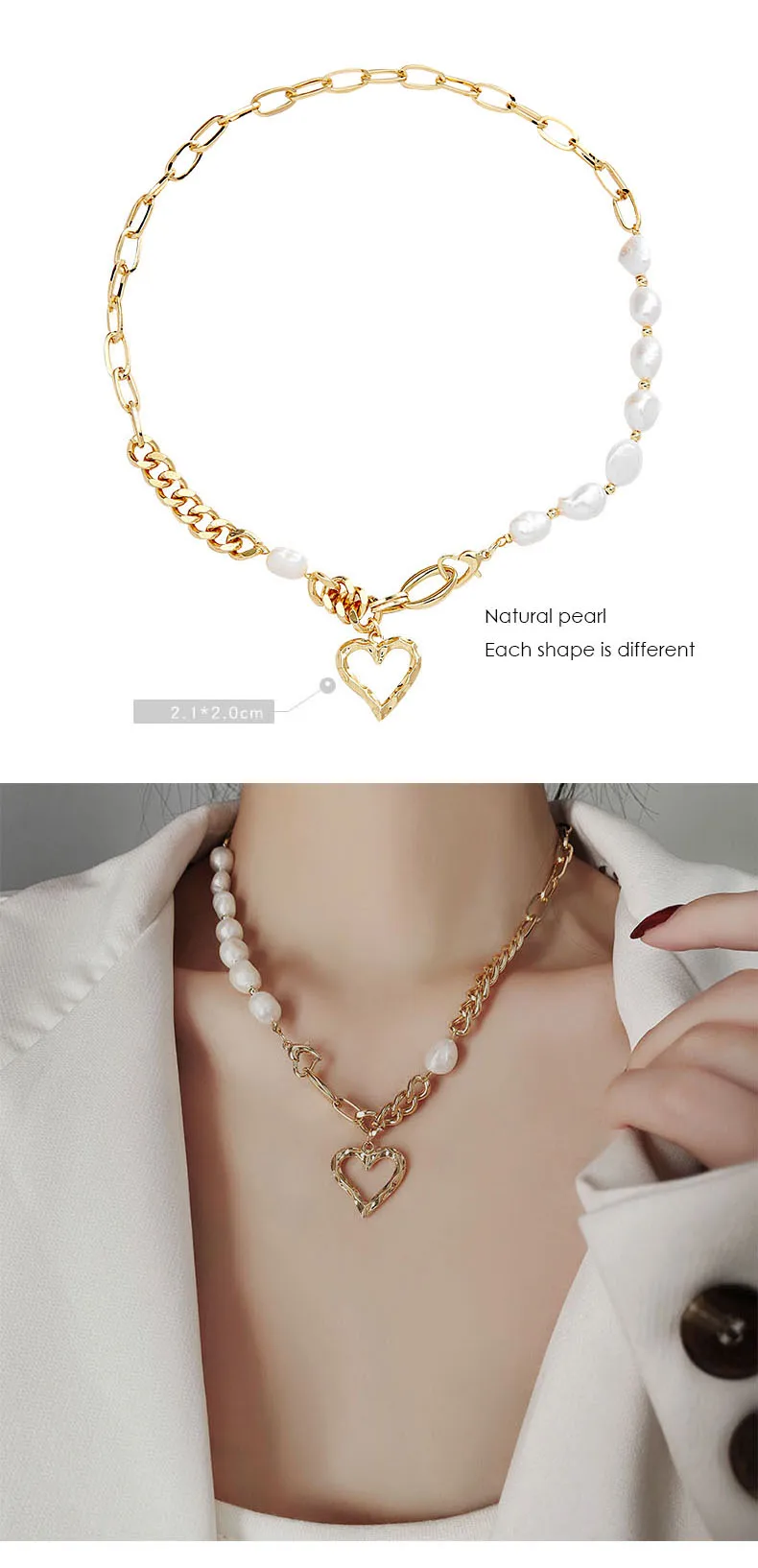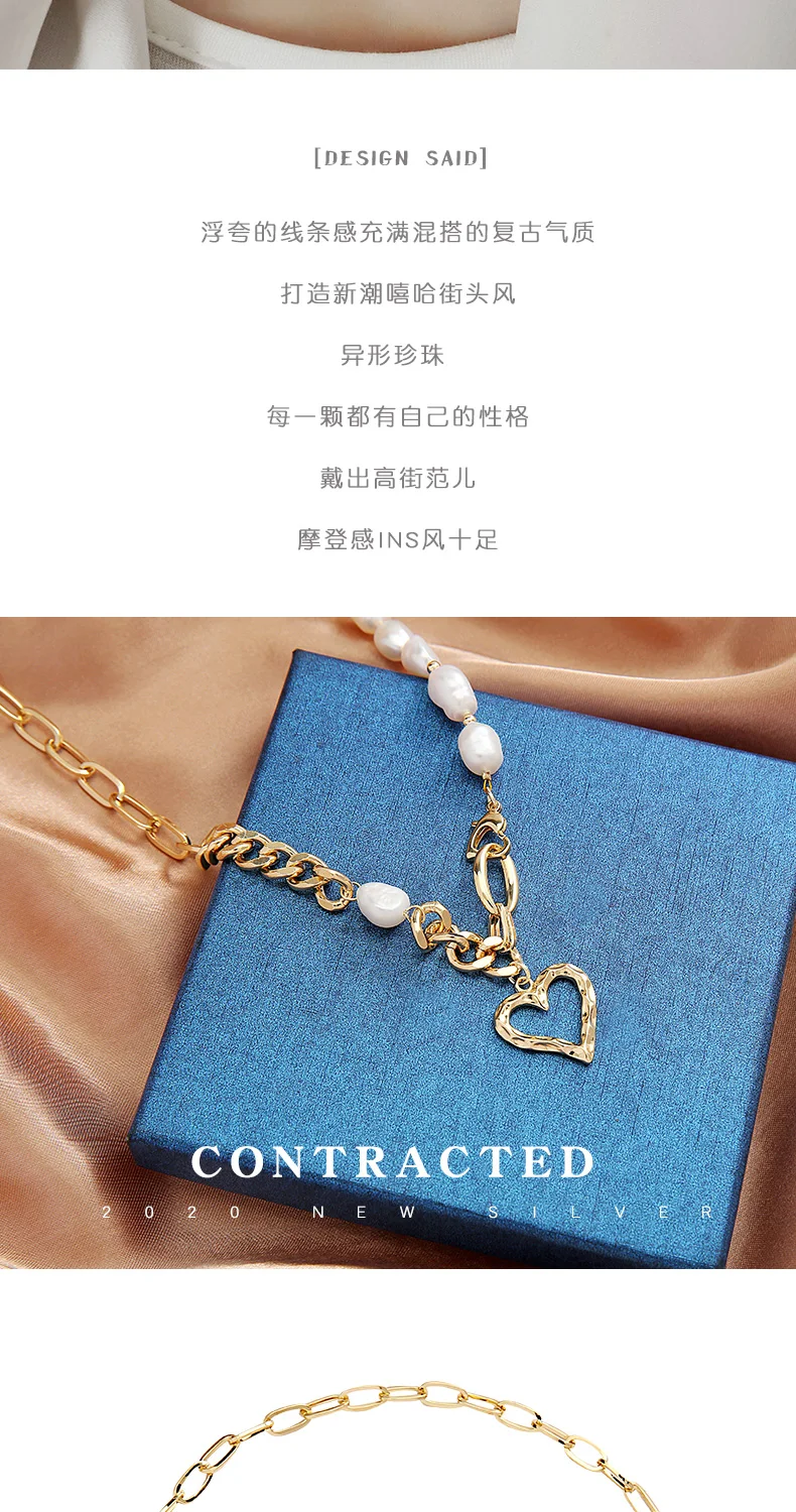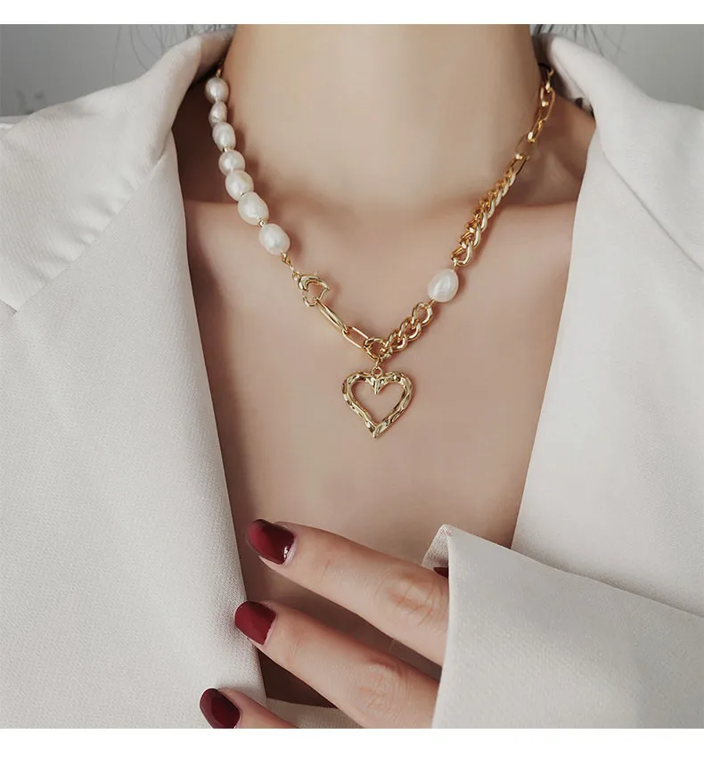 Famous Brand Jewelry Gold Color Heart-shaped Stainless Steel pearl Necklace For Woman Gift