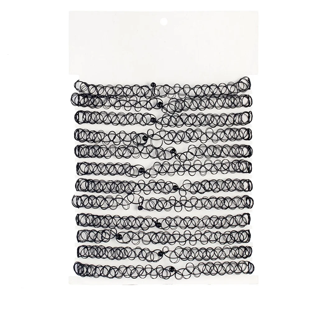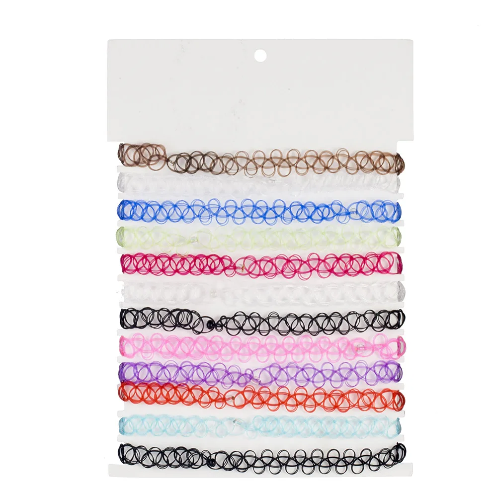 FAMSHIN 12PCS Sell Vintage Hippy Stretch Tattoo Choker Necklace Elastic Chocker Necklace Fishing Line Tattoo Necklace