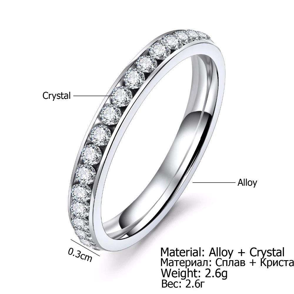 Fashion Silver Color Crystal Titanium Rings Stainless Steel Rings For Women 3mm Surround Fashion Wholesale Jewelry Gifts
