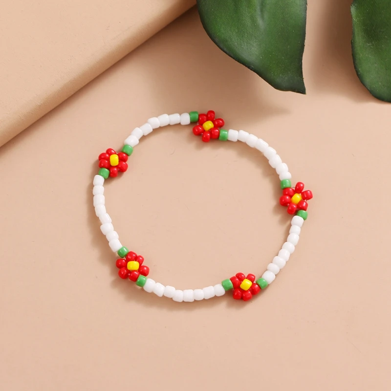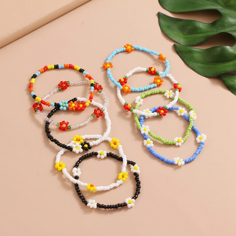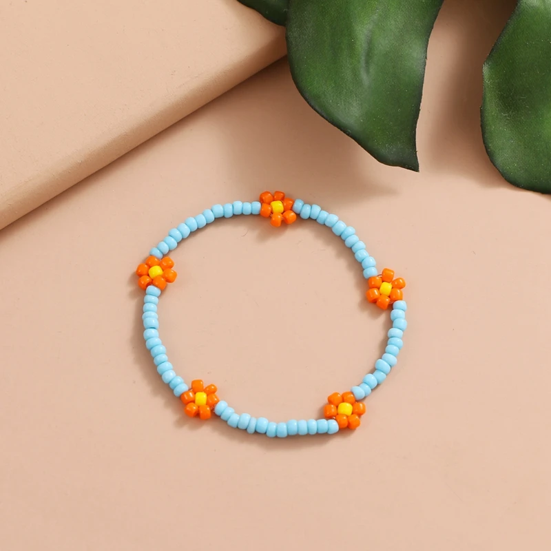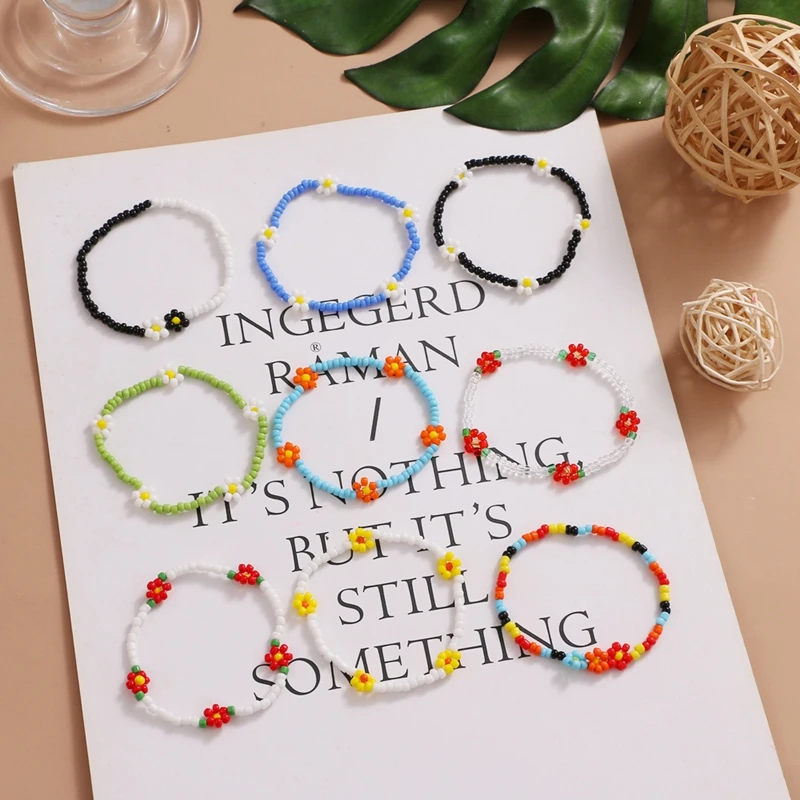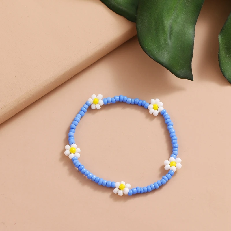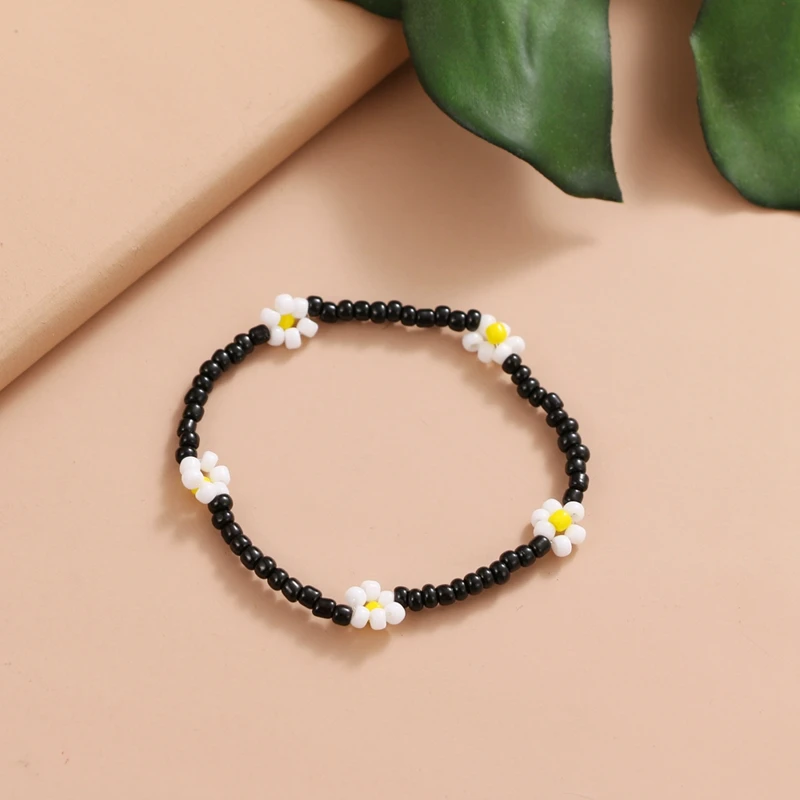 FAMSHIN Korean Flowers Daisy Bracelets Transparent Colorful Beaded Handmade Elastic Wristband For Women 2021 Trend Jewelry