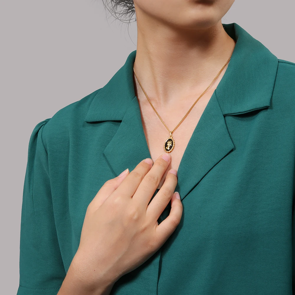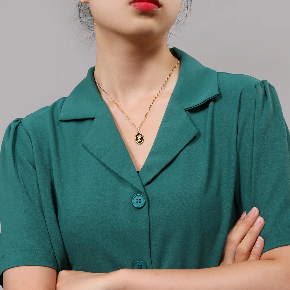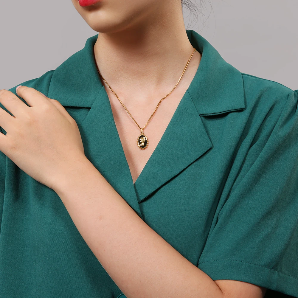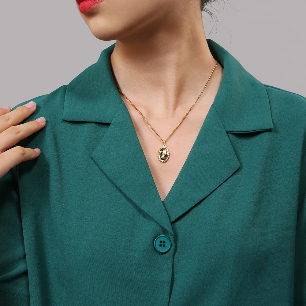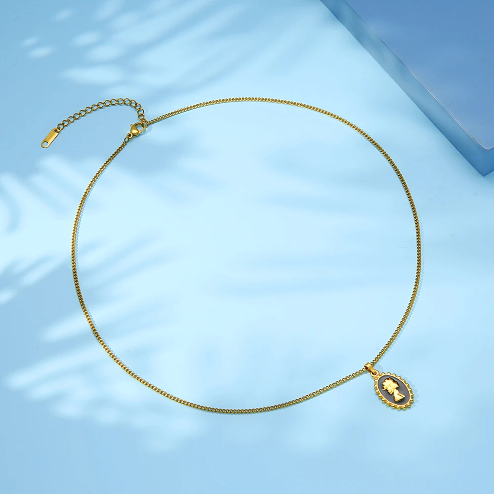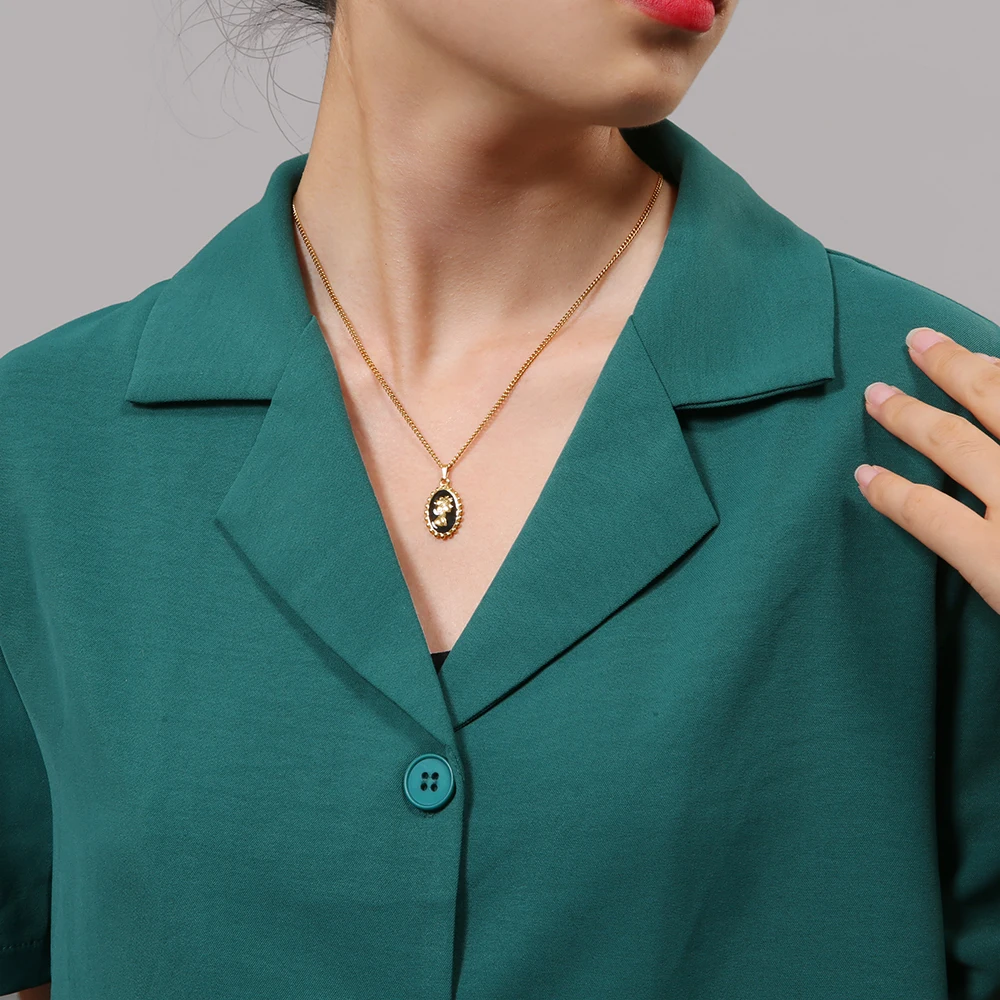 FANSHIDI Enamel Portrait Elizabeth Pendant Necklace For Women Stainless Steel Metal Chain Collar Necklace Jewelry 2022