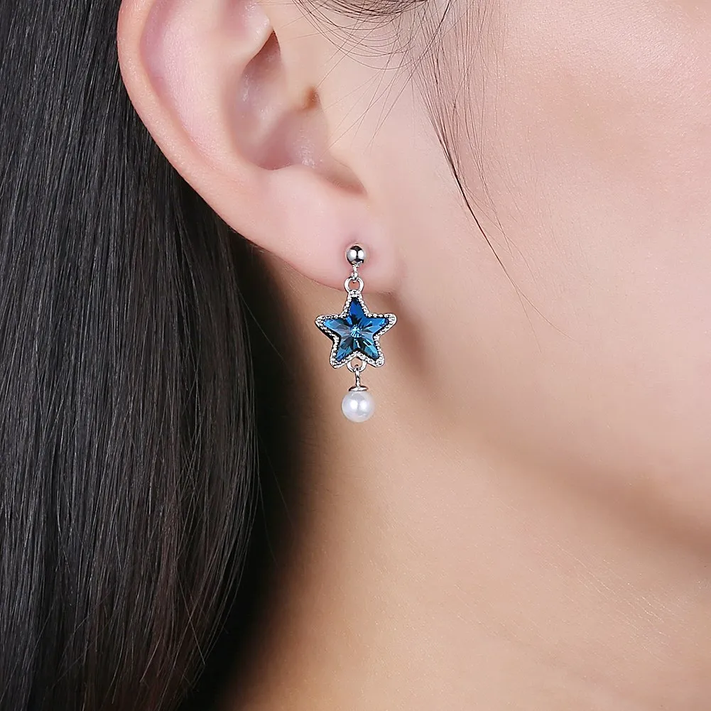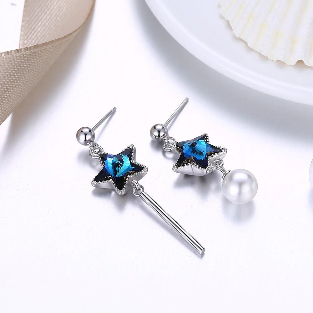 Fashion 925 Sterling Silver Asymmetry Star Earring Jewelry Purple AAA+ Cubic Zirconia Drop Earrings Women Jewelry Gifts