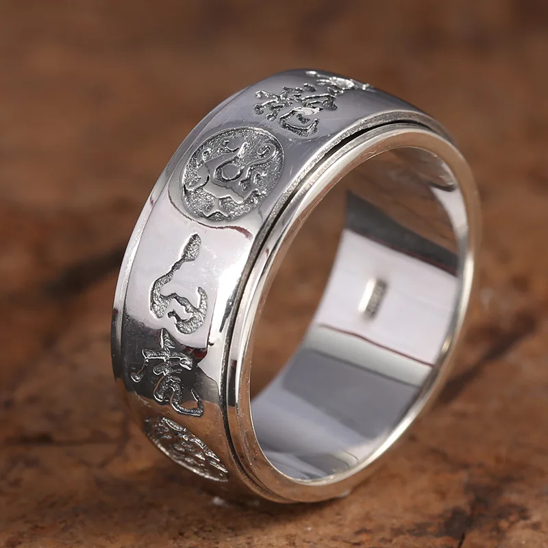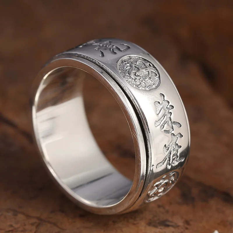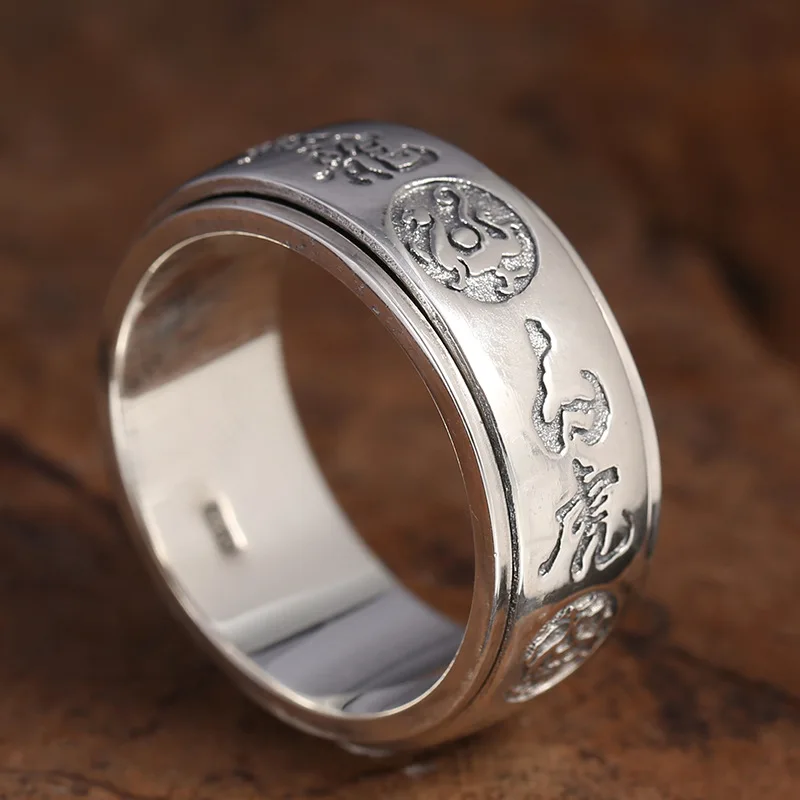 Fashion 925 Sterling Silver Rotatable Lucky Brave Ring Azure Dragon & White Tiger & Vermilion Bird Men Thai Silver Gift