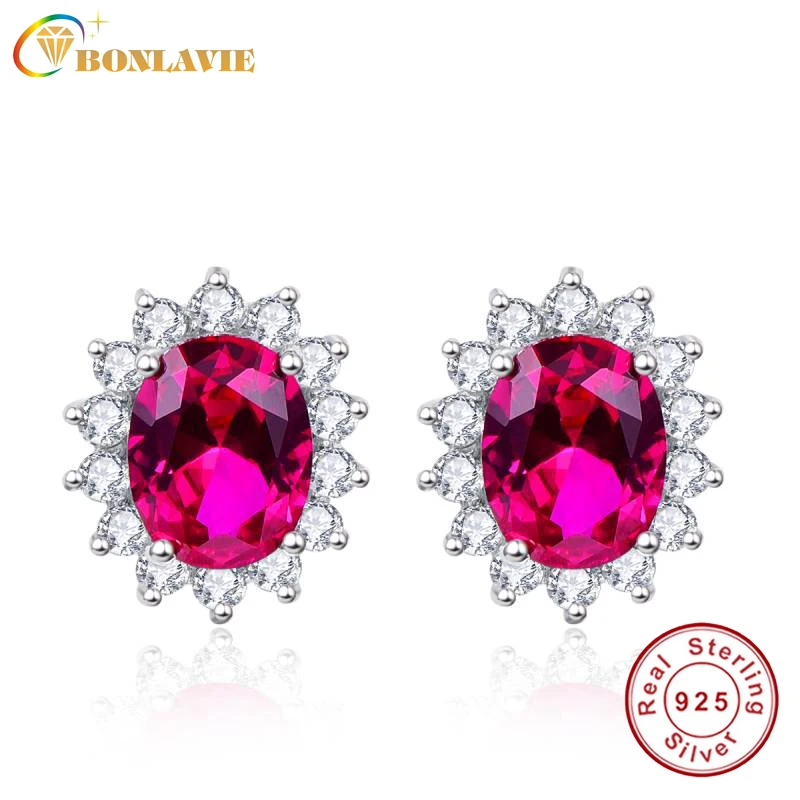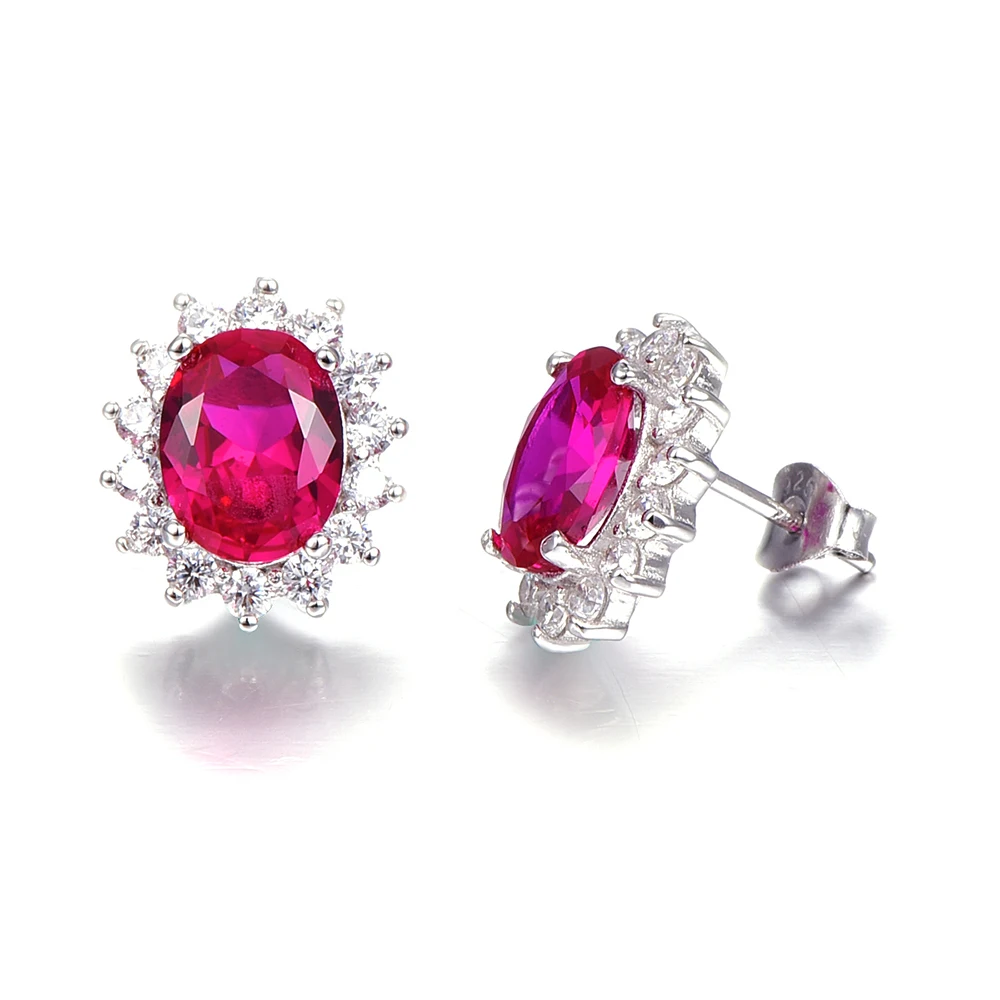 Trendy White 100% Real 925 Sterling Silver Earrings for Women Jewelry Cubic Zirconia Luxury Garnet Sun Flower Ruby Stud Earring