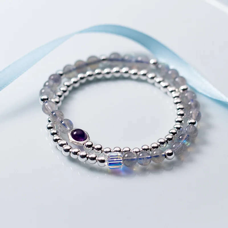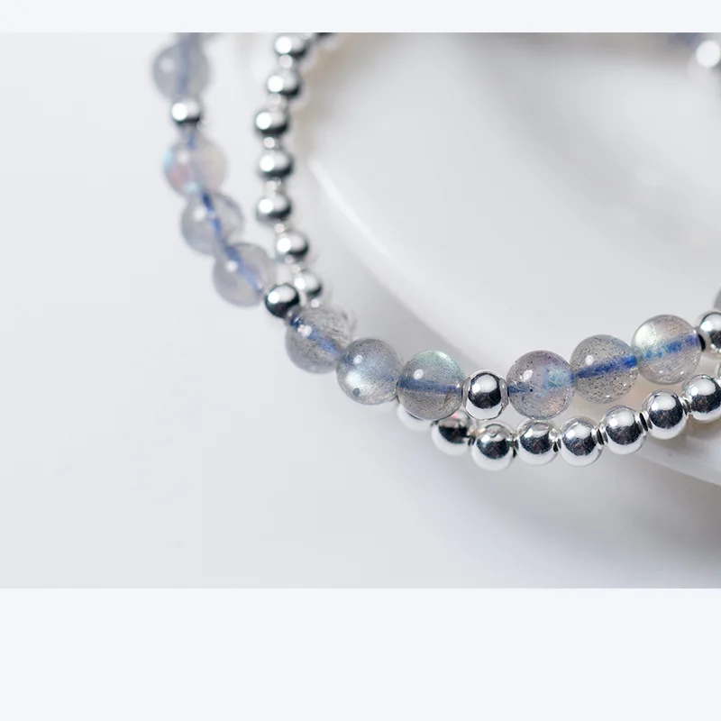Fashion Multi Circles Blue Light Moonstone Bracelet LAN CAI 925 Sterling Sliver Natural Stone Square Crystal Handmade Bracelet
