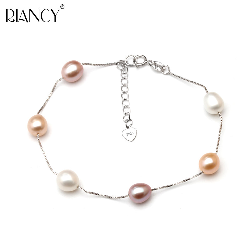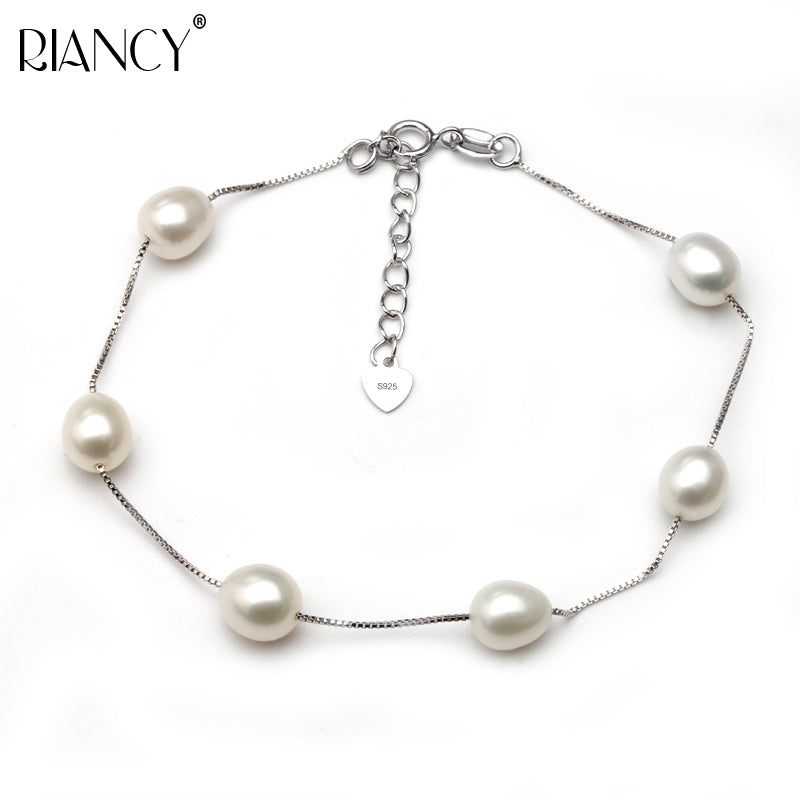Fashion Natural adjustable pearl Bracelets For Women 925 sterling silver jewelry silver chain pearl Bracelets Gifts