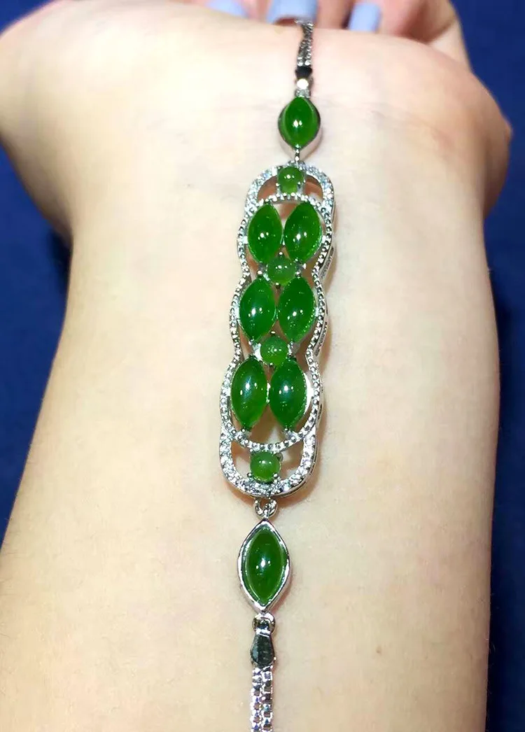 Fashion Noble Female Retro Thai Silver S925 Sterling Silver Natural Hetian Jade Jasper Women Bracelet