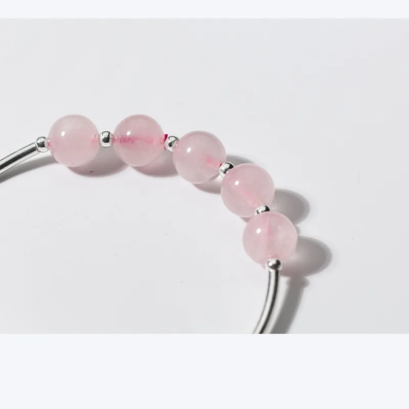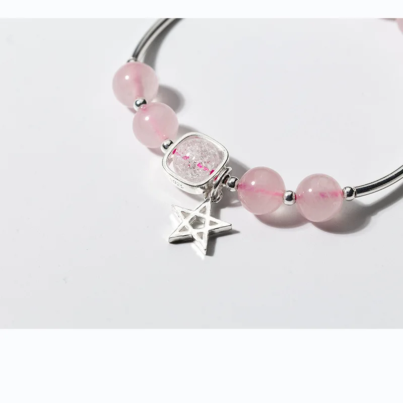 Fashion Pink Crystal Beads Bracelet LAN CAI 925 Sterling Sliver Ross Quartz Bracelet Five-pointed Star Pendant Jewelry for Women
