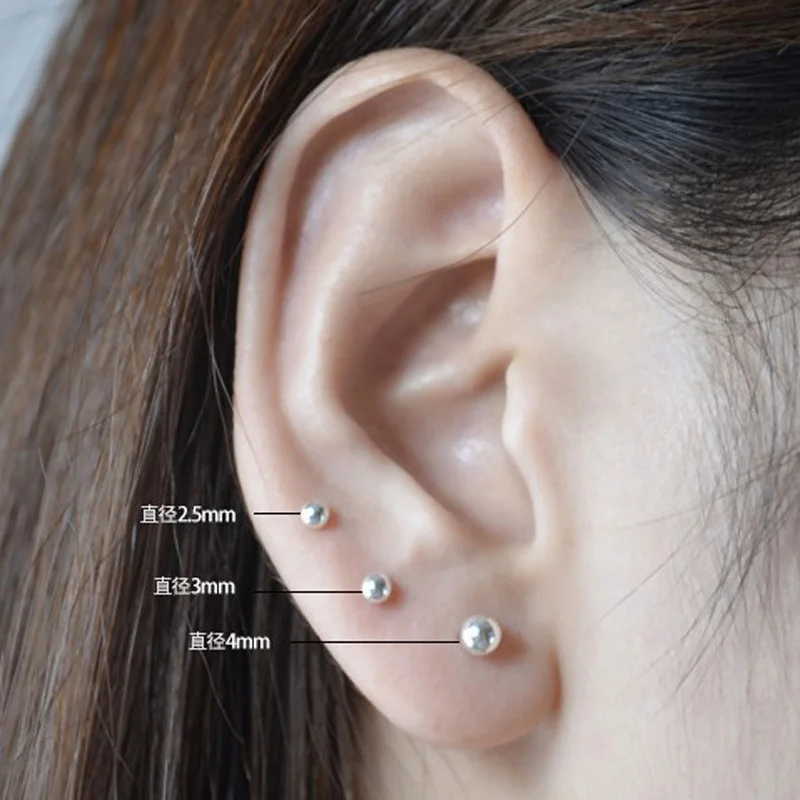 Fashion Real 925 Sterling Sliver Tiny Stud Earrings Women Small Bead Ear Studs Cute Mini Earring Fine Jewelry Girls Bijoux