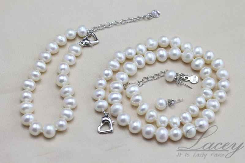 Fashion real natural wedding pearl jewelry sets women bridesmaid cultured jewelry sets 925 necklace bracelet mother wife gift