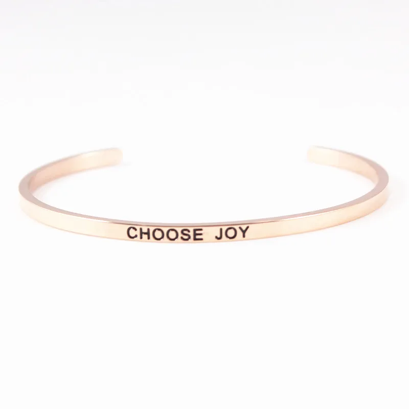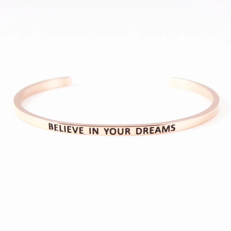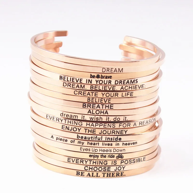 Fashion Rose Gold Bangle Jewelry Dream Breathe Believe Aloha Choose Joy Letter Engraved Open Cuff Mantra Bracelet Lovers' Gift