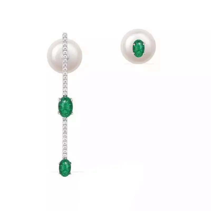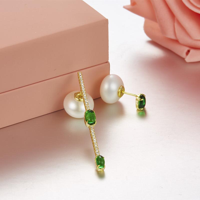 Fashion White Pearl Earrings Real 925 Sterling Silver Fine Jewelry Asymmetrical Green Stone Earrings Stud For Women