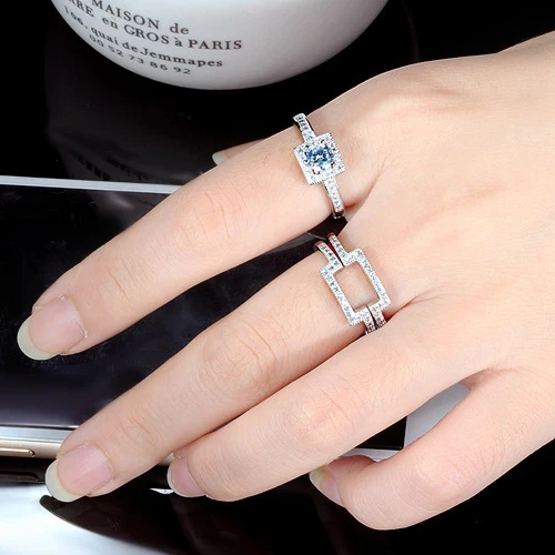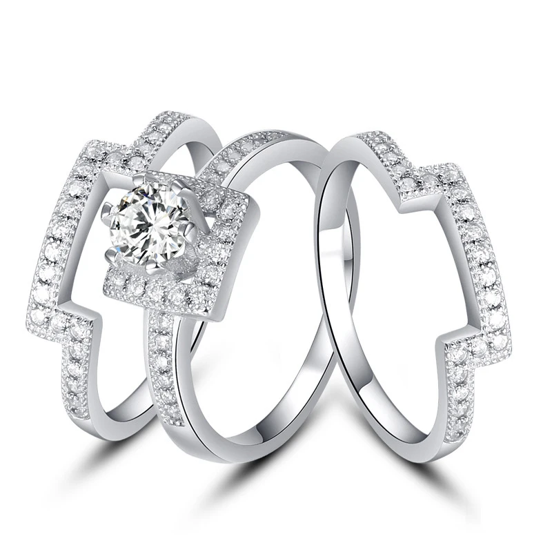 Fashion White Round CZ 925 Sterling Silver Square Stackable Promise Rings