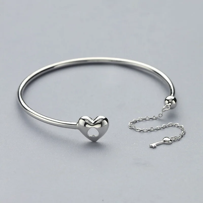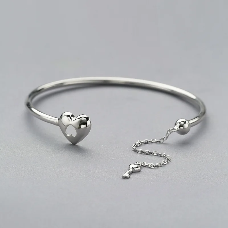 Fashionable Simple Adjustable Heart 925 Sterling Silver Bangle
