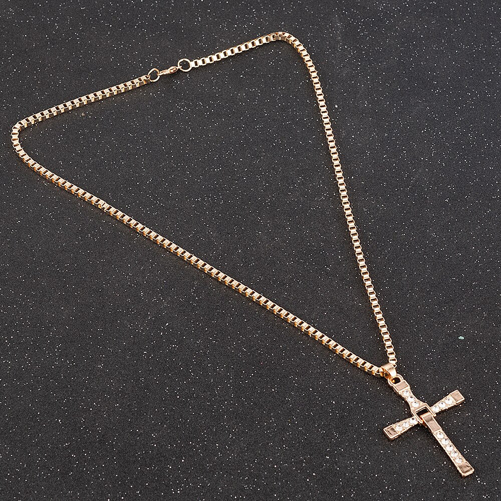 Fast and Furious Movies Actor Dominic Toretto Rhinestone Cross Crystal Pendant Chain Necklace Men Jewelry