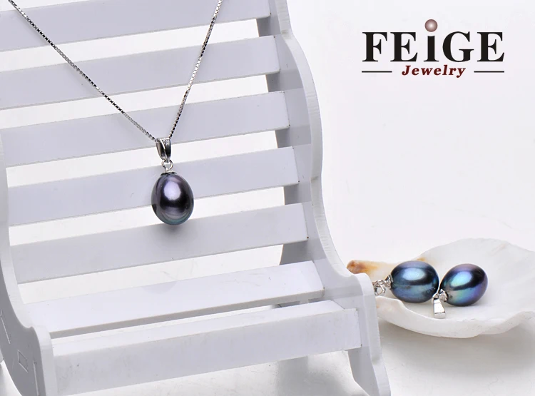 8-9mm Black Pearls 925 Sterling Silver Necklaces & Pendants For Women's Retro Style Fine Jewelry