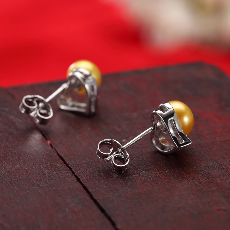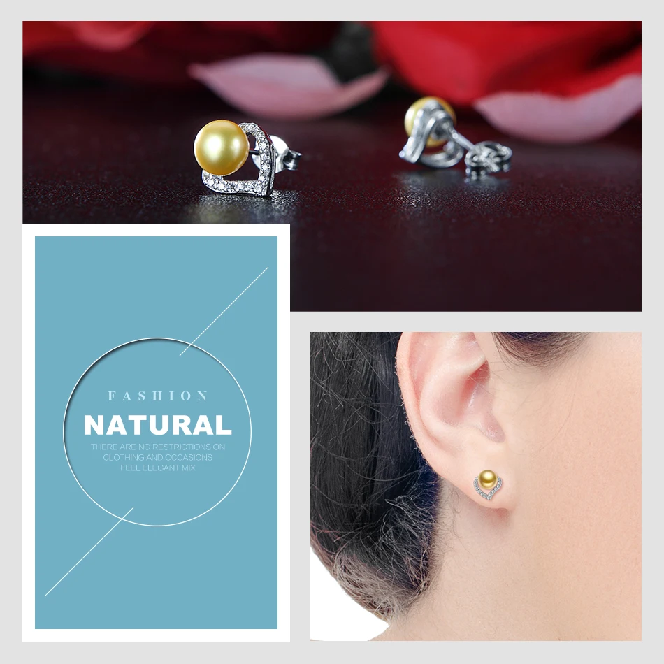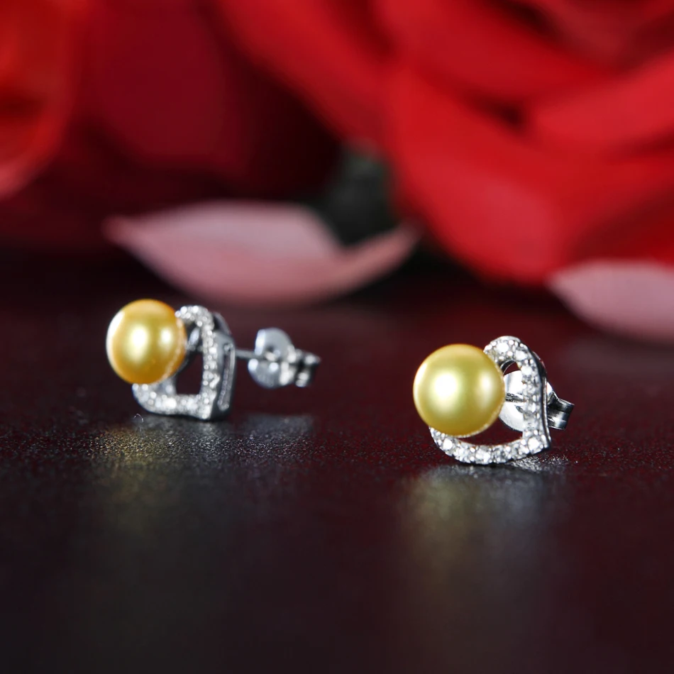 Fashion Heart Earrings 925 Silver Stud Earring 6-7mm Golden Pearl Earrings for Women Fine Jewelry Pendientes
