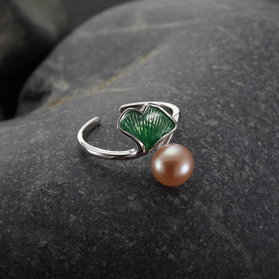 Lovely 925 Sterling Silver Enamel Ring Accessories Anillos Real 8-9mm Pink Pearl Rings for Women Fine Jewelry