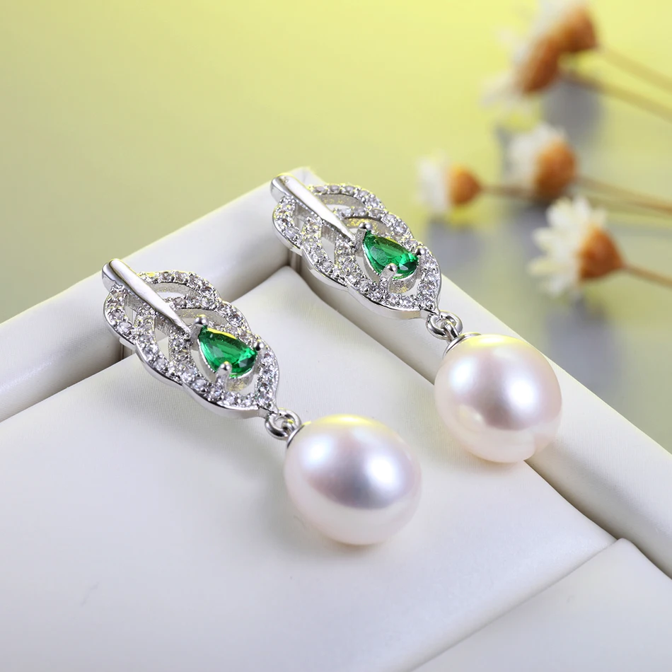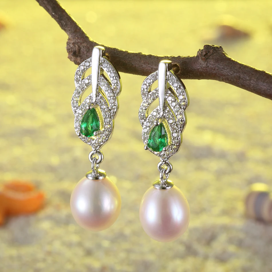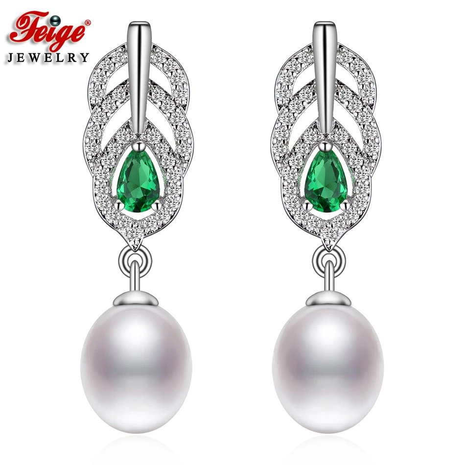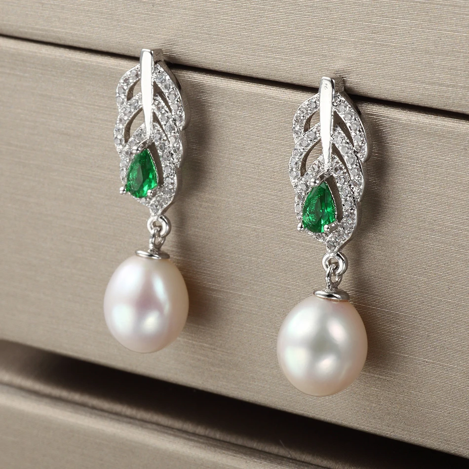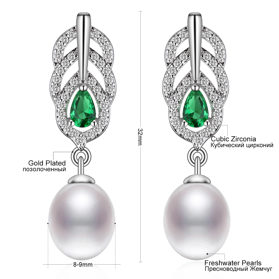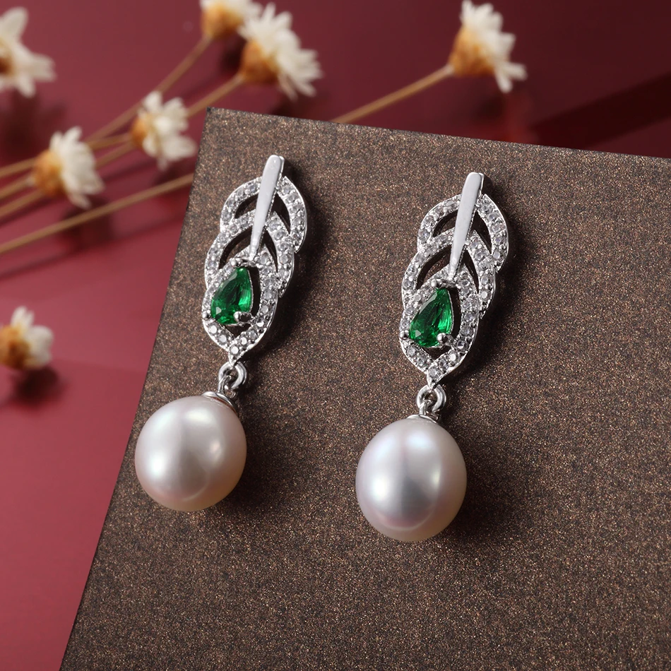 Luxury Peacock Feather Shape Pearl Stud Earrings 8-9MM White Pearl Earring Pearl Jewelry Brincos for Women Gifts Bijoux
