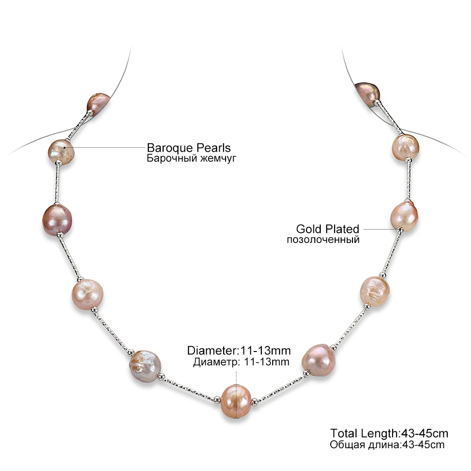 Original Design Luxury Jewelry Pearl Necklace 11-13MM Multicolor Baroque Pearls Chain Necklace for Women Fine Jewelry Gift