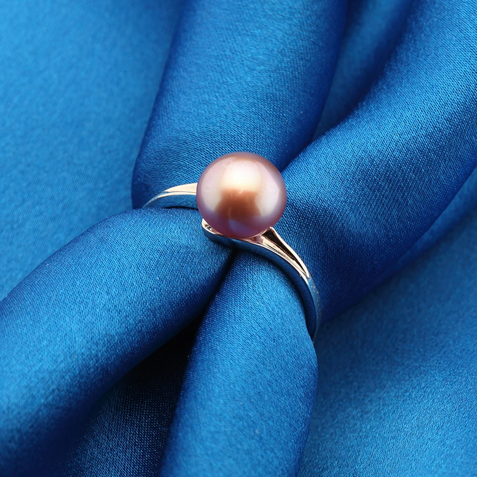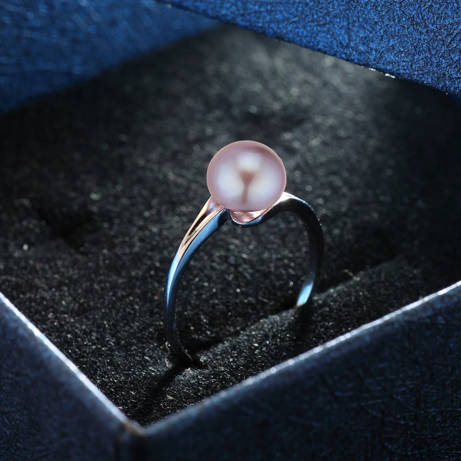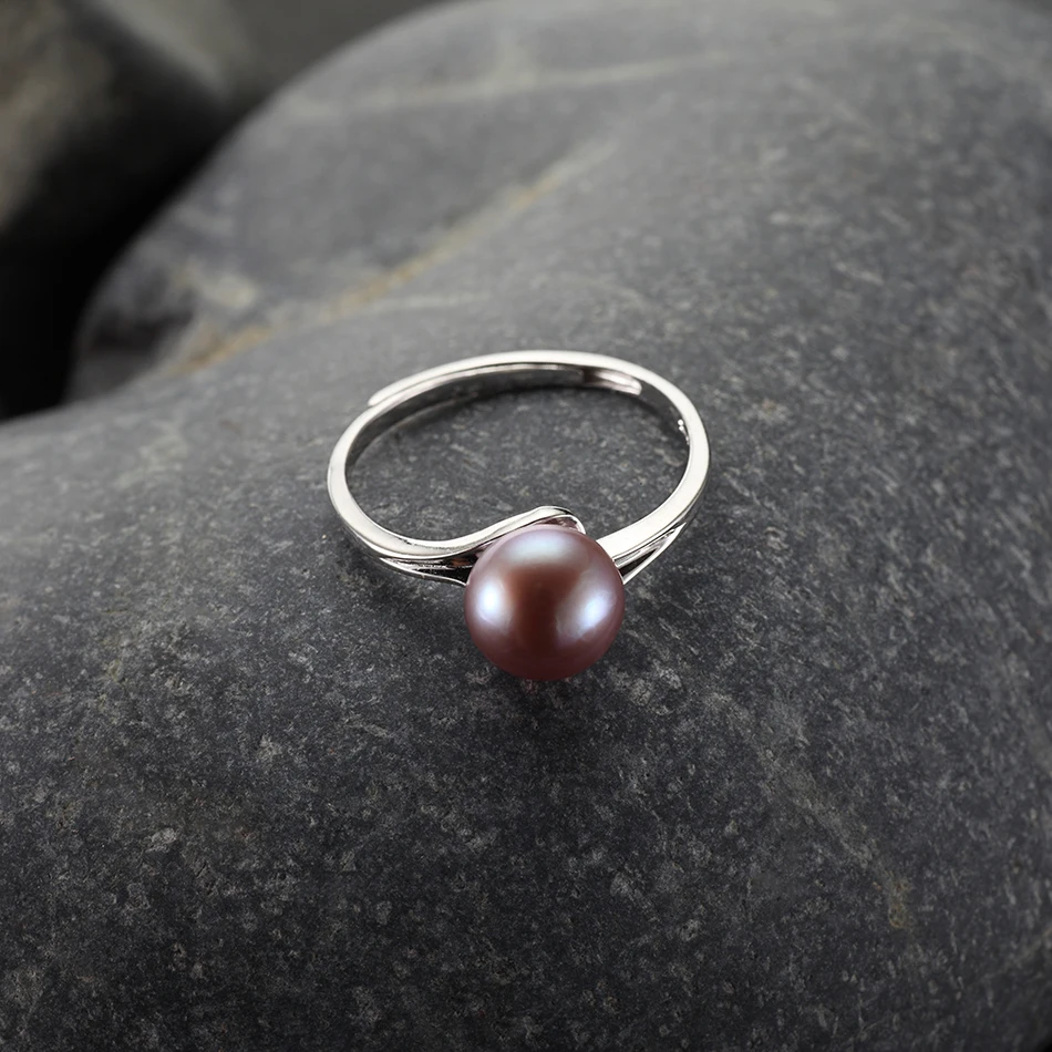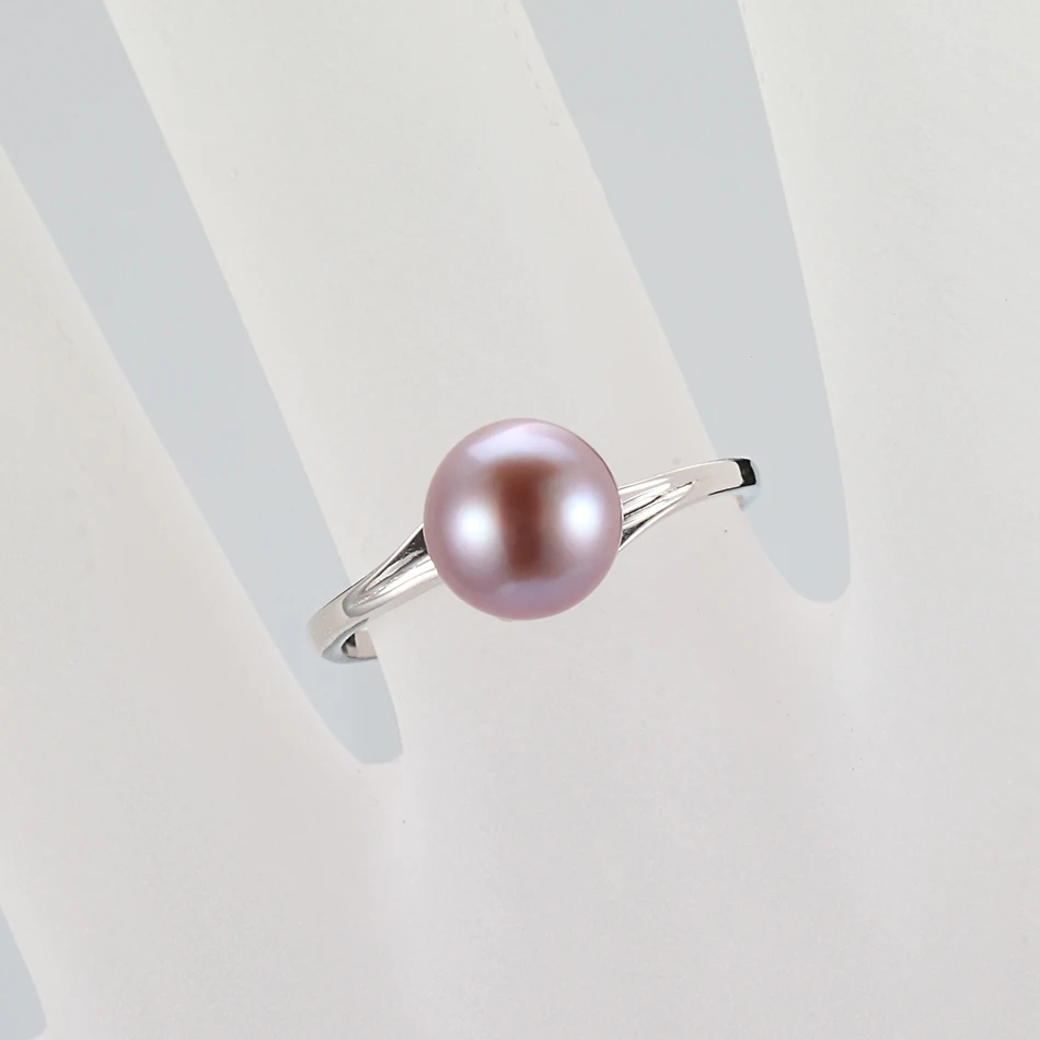 Real 925 Sterling Silver Ring 7-8mm Purple Natural Pearl Rings for Women Beautiful Classic Style Fine Jewelry
